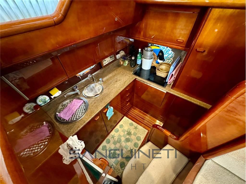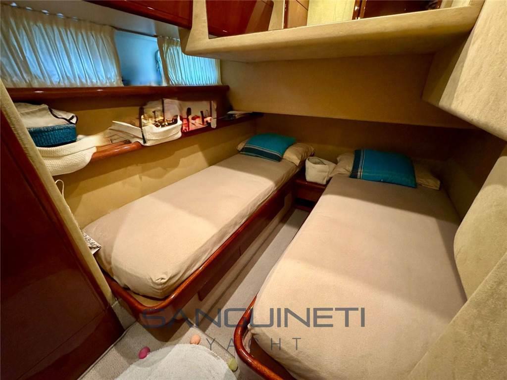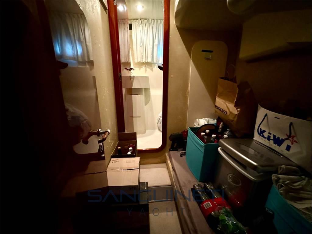1 cabina matrimoniale a prua, 2 cabine doppie letti in piano. Doppi servizi con doccia separata e bidet. Cabina marinaio. Doppia dinette con accesso al fly dall'interno barca.