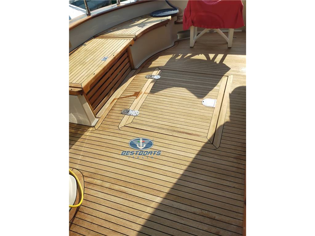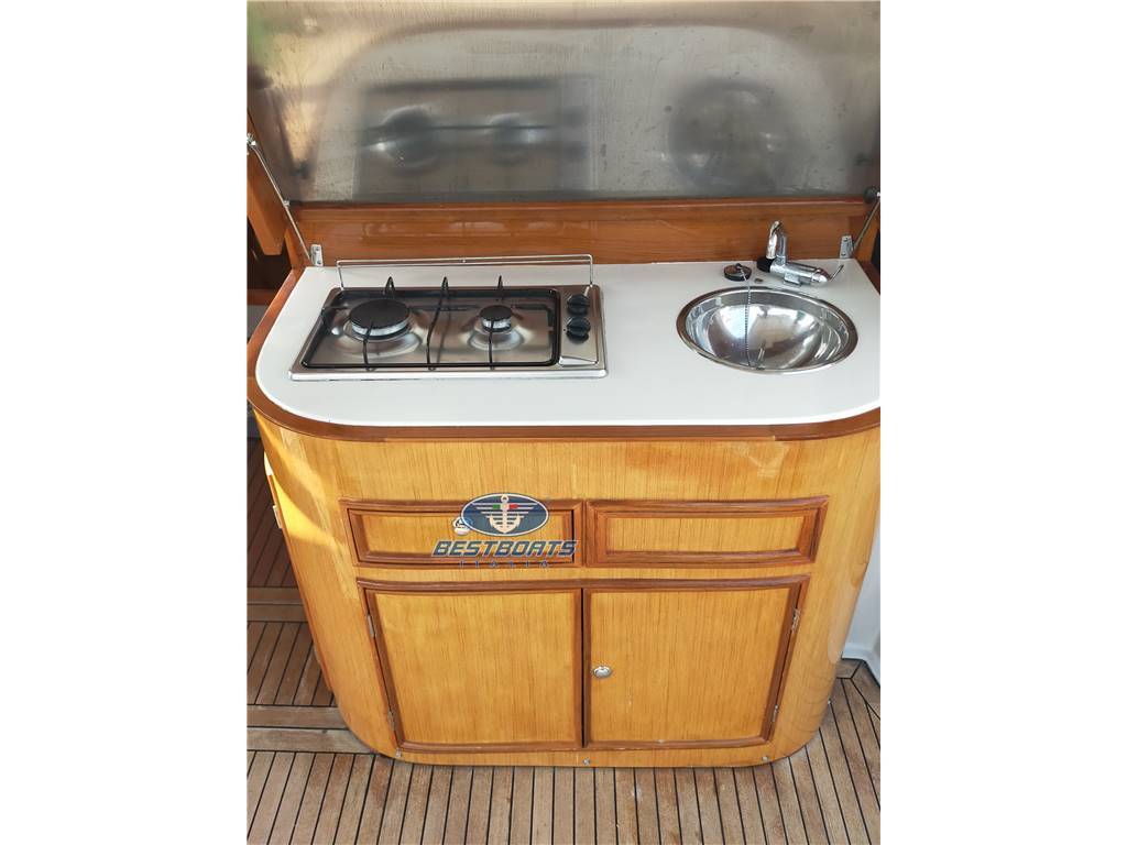 Bimini poppa + coperture esterne + totale pozzetto - Aria Condizionata e Riscaldamento - Cuscinerie esterne complete di rivestimento in spugna beige con prendisole e divano di prua + sedute di poppa tutte in ottime condizioni - Falchetta e trincarini in mogano - Plancetta poppa acciaio e teak - Impianto Tv con antenna Raymarine + TV LCD in dinette e camera da letto - Verricello elettrico salpancora a prua - Boiler acqua calda con doccia miscelata sia esterna che nel bagno interno - Tavolo pozzetto in mogano con sedie aggiuntive - Mobile esterno con lavello e piano cottura in a gas - Cucina interna completa di frigo, lavello inox , fuochi a gas - Tavolo dinette trasformabile in letto aggiuntivo - Impianto antincendio automatico sala macchine - Tagliando motori + antivegetativa carena e cambio zinchi 2025
