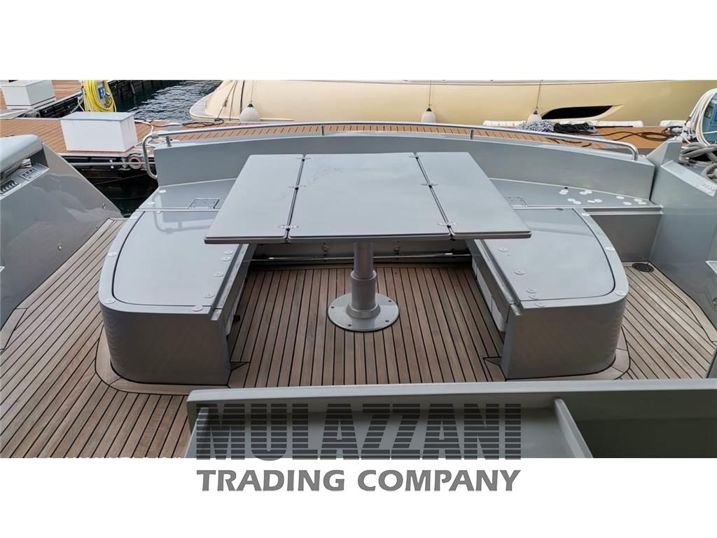 Altoparlanti (interni ed esterni), Antenna Satellitare TV, Aria condizionata (a doppio ciclo in tutti gli ambienti), Barometro, BBQ/ Grill (in pozzetto), Boiler (elettrico), Cassaforte, Cassetta di pronto soccorso, Clima reversibile, Congelatore, Copripozzetto (invernale), Cucina, Cuscineria completa, Cuscineria di poppa, Cuscineria di prua, Cuscineria Pozzetto, Dotazioni di sicurezza entro 50 miglia, Forno (Bosch ventilato), Frigorifero esterno, Frigorifero interno (Indel 25l), Giubbetti di salvataggio, ICE Maker, Impianto acque nere, Impianto TV, Inverter (Mastervolt), Lavastoviglie, Meccanismo saliscendi per TV, Microonde, Pavimento interno in legno, Piastra in vetroceramica (Bosch), Prese interne 12v, Prese interne 220v, Radio AM/FM, Riscaldamento, Salvagente anulare con cima munita di boetta luminosa, Serbatoio Acque Nere, Stereo (stereo cd in tutti gli ambienti), Tendalino (estivo traforato a poppa + ombreggiante nero ,), 4 TV (LG LED), 4 WC marino elettrico, Winecooler (Vitrifrigo), 2 Zattera di salvataggio (rinnovate 2022), Illuminazione interna ed esterna a Led