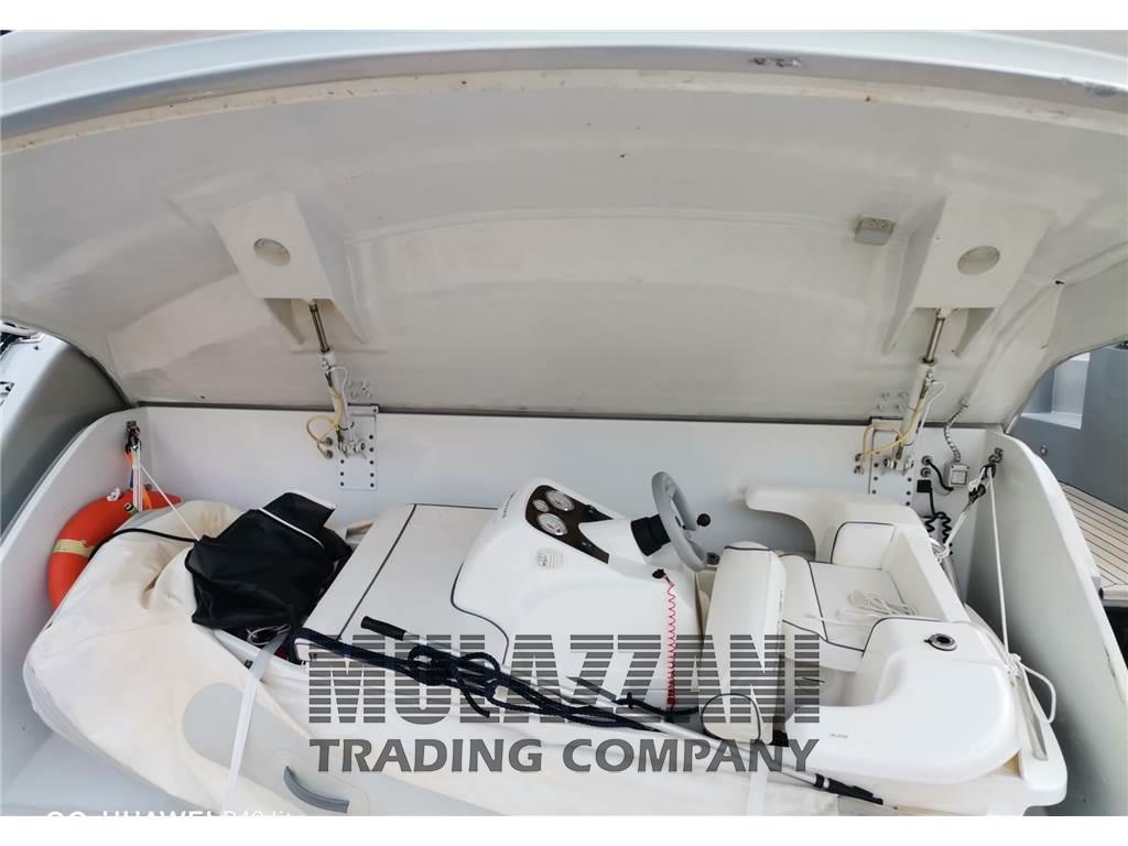 Allarme motore, Allarme sentina, Ancora, Angolo barra, Autoclave, 24 Batterie, Bussola, Caricabatterie (Mastervolt), Comando motori elettronico, Contametri catena, Display, Doccia esterna, Ecoscandaglio, Elica di prua - bow thruster (Side-power), Faro orientabile, Flap elettrici, GPS, Hard top (elettroidraulico), Indicatori Flaps, Joystick, Lavaggio catena, Lavandino nel Pozzetto, Luci di cortesia (led), Luci subacquee, Passerella (idraulica a scomparsa Besenzoni), Piattaforma, Pilota automatico (Raymarine), Plotter con antenna GPS (Raymarine nuovo 2022), Pompa di sentina automatica, Pompa di sentina elettrica, Pompa di sentina manuale, Porta ingresso, Pozzetto Teak, Presa 220V banchina, Presa acqua banchina, Radar (Raymarine), Radio VHF (Raymarine), Salpa Ancore Elettrico, Scaletta da bagno, Sedile Copilota (Besenzoni), Tavolo pozzetto (prendisole), Tender (Williams turbojet), Tromba, 2 Winch tonneggio di poppa