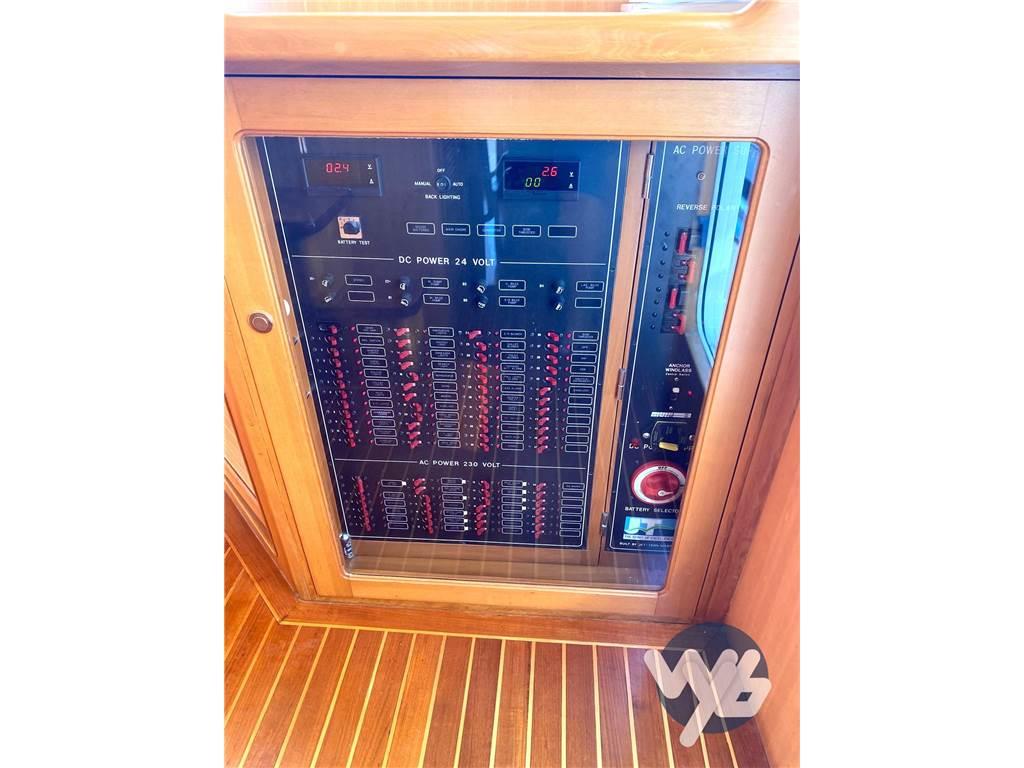 Acqua Calda, Boiler, Clima reversibile, Cuscineria completa, Digitale Terrestre, Dissalatore, Frigorifero interno, Impianto acque nere, Impianto TV, Lavasciuga, Lavastoviglie, Prese interne 12v, Prese interne 220v, Stereo, Tendalino. Allarme motore, Allarme sentina, Autoclave, Batterie, Caricabatterie, Comando motori elettronico, Doccia esterna, Elica di prua - bow thruster, Faro orientabile, Impianto antincendio, Luci di navigazione, Passerella, Pompa di sentina elettrica, Pompa di sentina manuale, Porta ingresso, Porta laterale, Presa 220V banchina, Presa acqua banchina, Salpa Ancore Elettrico, Scaletta da bagno, Tavolo pozzetto, Tender.