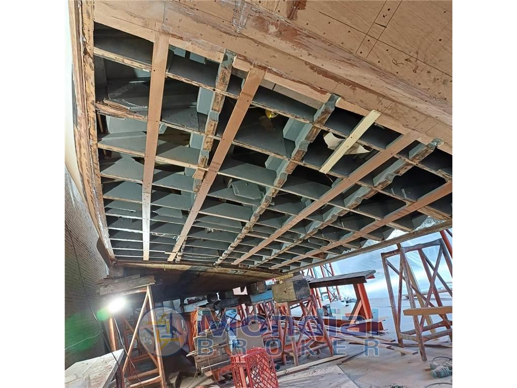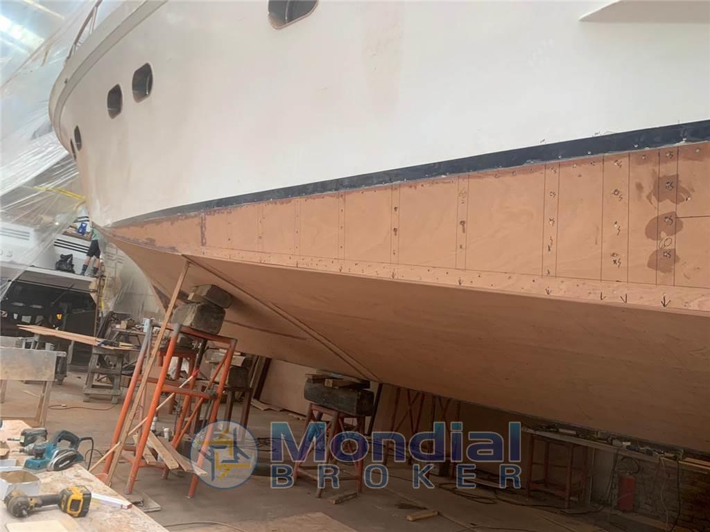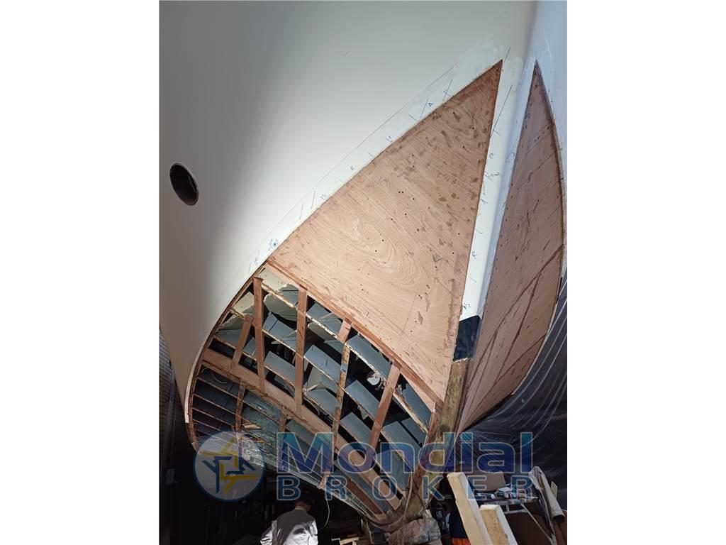 Lavori 2024: rifacimento di tutto il fondo dello scafo e dello spigolo di carena (opera viva) presso storico cantiere - rifacimento dei passaggi a scafo di assi e timoni - istallazione elica di prua - sostituzione di tutte le prese a mare - sostituzione di tutte le tubazioni acqua dolce - istallazione nuova antenna SAT TV - rifacimento a nuovo delle masse elettriche.