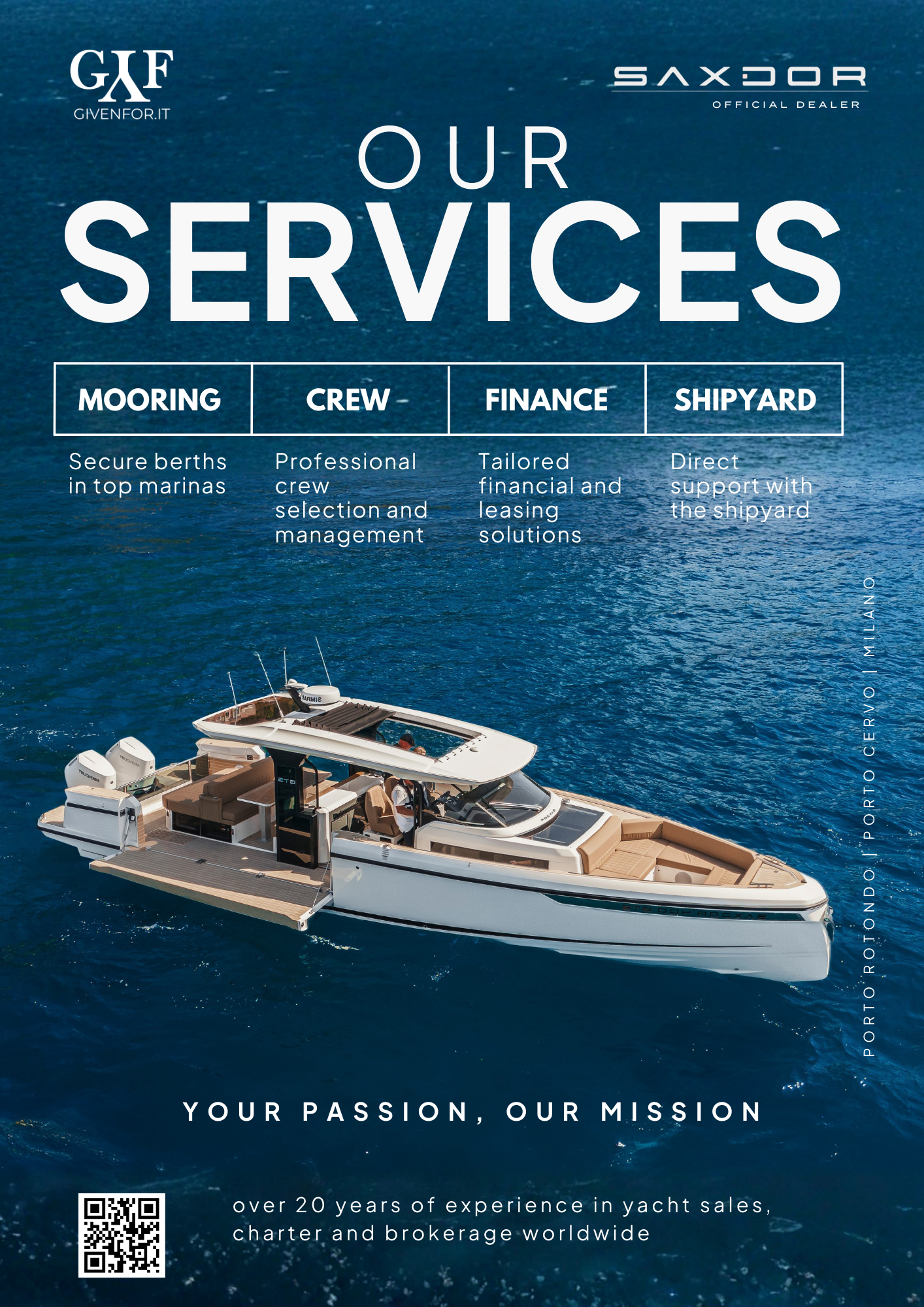 Yachts Srl , con Given For Yachting Srl, è dealer esclusivo di Saxdor Yachts per la SARDEGNA. Contattateci per ogni ulteriore informazione.