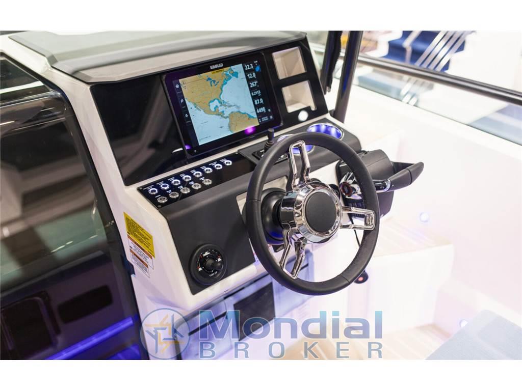 2 Allarme motore, Allarme sentina, Ancora, Batterie, Bussola, Comando motori elettronico, Computer di bordo (Mercury), Contamiglia (Simrad), Ecoscandaglio (Simrad), GPS (simrad), Luci di cortesia, Piattaforma, Plotter (Simrad NSX12), Pompa di sentina automatica, Porta ingresso, Sedile Copilota, Tromba