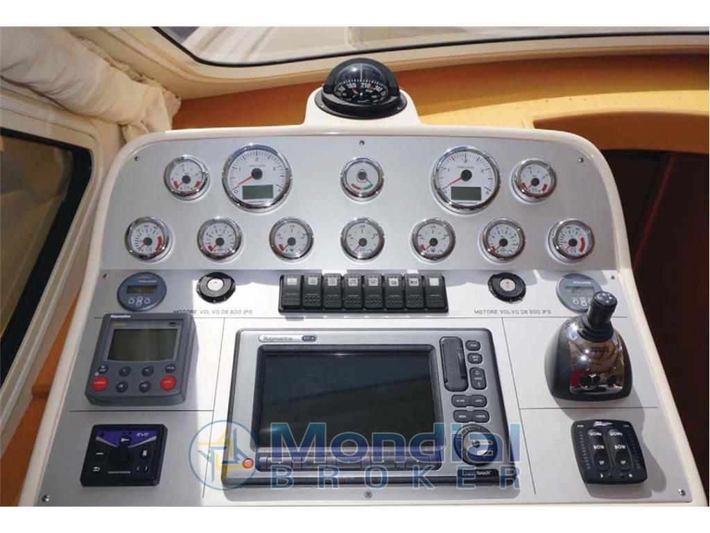 Bussola, Comando motori elettronico, Ecoscandaglio, GPS, Luci di navigazione, Pilota automatico, Radar, Radio VHF.