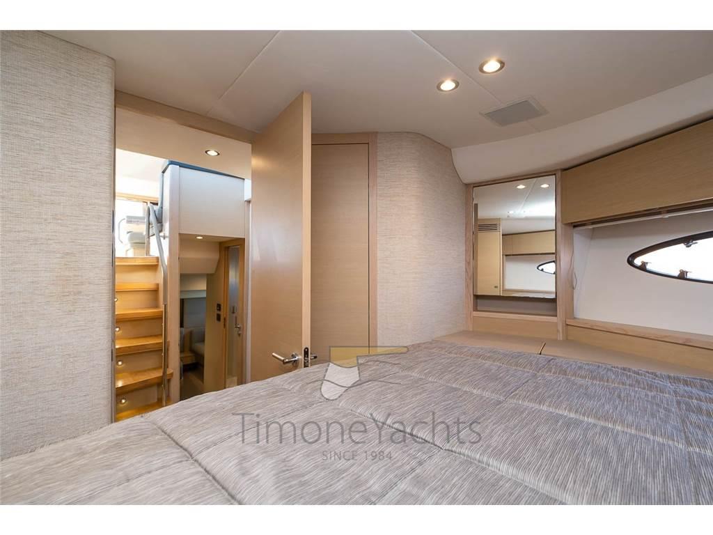 L’imbarcazione crea un ambiente fluido tra salone e pozzetto, esaltato dalle grandi vetrate laterali che garantiscono una luminosità naturale straordinaria in tutta la zona living. Con una velocità massima di 32 nodi e una crociera economica ideale a 2400 giri (circa 24 nodi con consumi ottimizzati di 120 l/h totali), questo modello assicura una navigazione morbida e una manovrabilità precisa tramite joystick, rendendo semplice ogni fase di ormeggio. La configurazione interna prevede tre cabine, tra cui la suite armatoriale a tutto baglio, cabina VIP matrimoniale a prua, terza cabina ospiti con letti a castello, mentre il comfort di bordo è garantito dalla predisposizione o installazione dello stabilizzatore Seakeeper 6, supportato dal generatore ONAN da 11 kW. Equipaggiato con plancetta elettroidraulica da 400 kg e un flybridge spazioso completo di wet-bar, il Princess 49 del 2017 è uno yacht maturo e tecnicamente d'avanguardia, ideale per chi cerca prestazioni elevate e spazi da categoria superiore in una dimensione ancora facile da gestire.