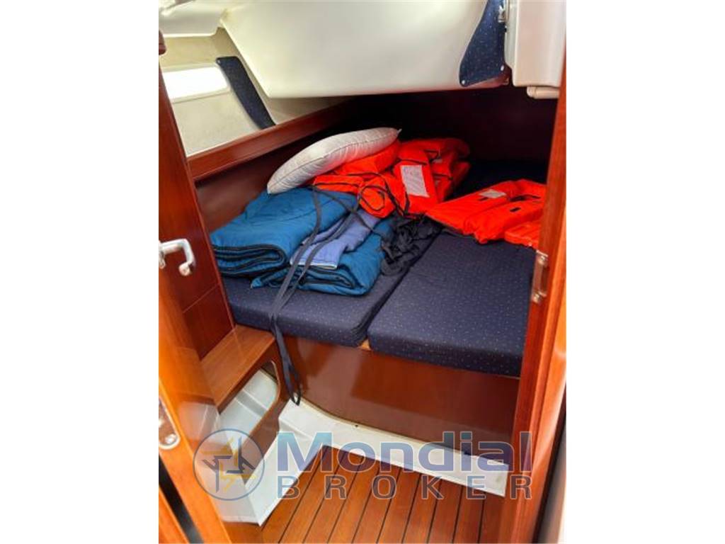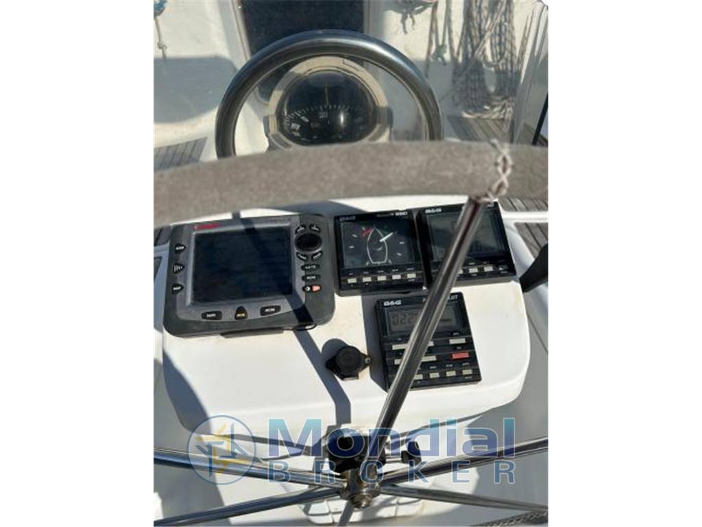 Layout interno a tre cabine con tre matrimoniali alla francese, dinette trasformabile e due bagni, per un totale di 8 posti letto, serbatoi da 135 l carburante e 476 l acqua, riscaldamento Eberspacher, acqua calda, prese 12V e 220V, cucina completa con fornello, forno e frigorifero. Strumentazione elettronica composta da bussola, ecoscandaglio, log, stazione vento, GPS Lorenz con plotter e antenna dedicata, pilota automatico B&G e VHF Icom. Coperta attrezzata con salpa ancore elettrico, passerella in teak, piattaforma bagno, doccia esterna, doppia pompa di sentina, winch, avvolgifiocco, randa avvolgibile in albero e gennaker Doyle avvolgibile con relativa attrezzatura. Barca mantenuta con regolarità, pronta alla navigazione, adatta a utilizzo familiare o crociera a medio raggio, prezzo richiesto euro 79.000 IVA pagata, dati ritenuti corretti ma non costituenti documento contrattuale.