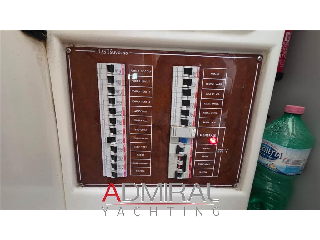 ACQUA CALDA, ALTOPARLANTI, ANCORA, AUTOCLAVE, BATTERIE, BOILER, CARICABATTERIE, CUCINA, CUSCINERIA DI PRUA, DOCCIA ESTERNA, FLAP IDRAULICI, FRIGORIFERO, OSCURANTI, PAVIMENTO INTERNO IN LEGNO, PIATTAFORMA, POMPA SENTINA AUTOMATICA, PORTACANNE, PORTA INGRESSO, PRESA 220V BANCHINA, SALPA ANCORA ELETTRICO, SCALETTA BAGNO, STEREO, WC MARINO ELETTRICO