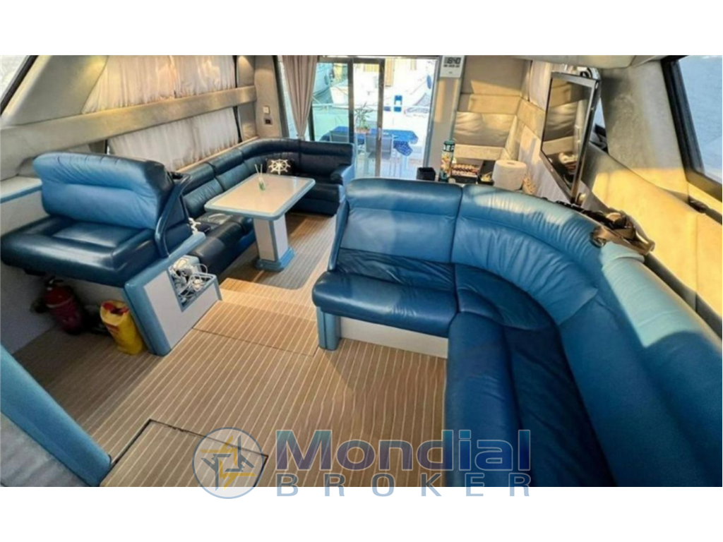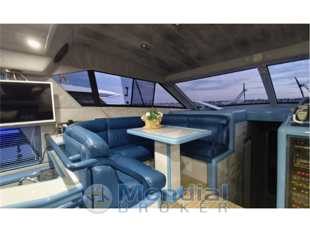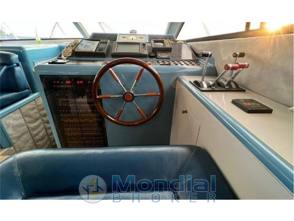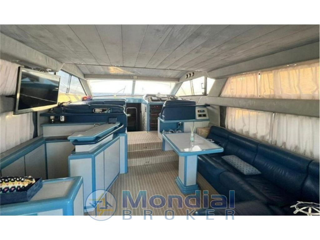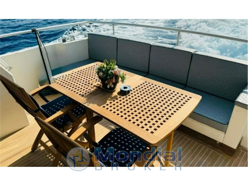 Tappezzeria: bimini, tende oscuranti, cuscini di prua e di poppa, per pozzetto e flybridge, copertura per strumenti, zanzariere, tendalino parasole, ancora, elica di prua, verricelli di prua e di poppa, luci di cortesia, doccia di coperta, apertura elettrica del vano motore, verricello elettrico, zattera di salvataggio, elica secondaria, pozzetto e ponte in teak, gru per tender, 2 WC elettrici, pavimento interno in legno, connessione Internet, allarme antintrusione, DTV, DVD, Radio, Decoder satellitare, antenna TV satellitare, altoparlanti.