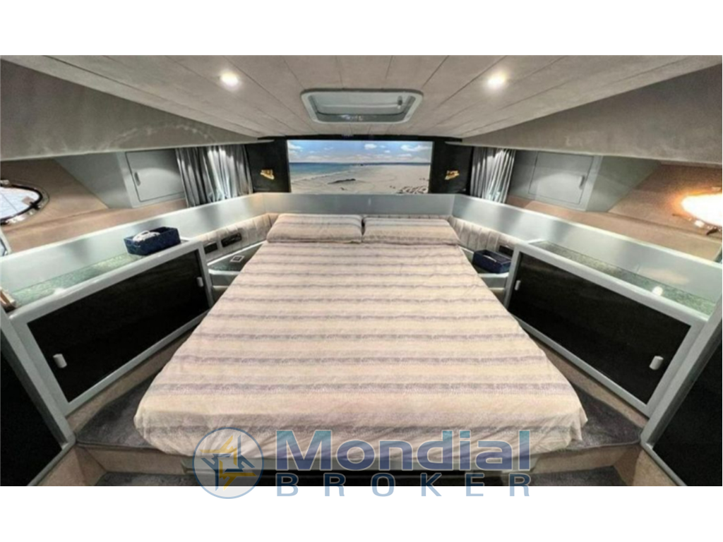 Gli spazi all'aperto sono arricchiti da un flybridge dotato di prendisole a prua, postazione di guida e zona lounge a poppa, perfetti per momenti di relax in compagnia! Gli spazi interni sono progettati per offrire il massimo comfort, anche grazie a tecnologie e numerose dotazioni presenti.