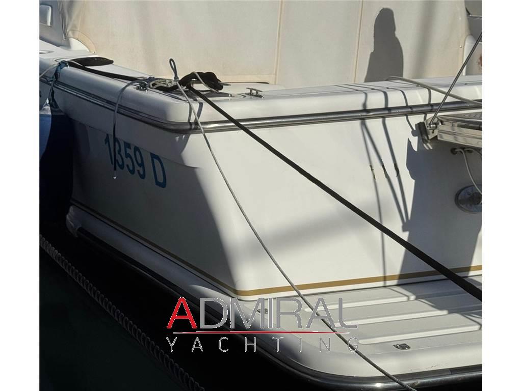 Allarme fumo/gas, Allarme motore, Allarme sentina, Alternatore, Ancora, Angolo barra, Antenna radar, Apertura Vano Motore Elettrica, Autoclave, Batterie, Bussola, Caricabatterie, Cavo corrente di banchina, Comando motori elettronico, Computer di bordo, Display, Doccia esterna, Ecoscandaglio, Flap idraulici, GPS, Hard top, Impianto antincendio, Lavandino nel Pozzetto, Log, Luci di cortesia, Luci di navigazione, Passerella, Piattaforma, Pilota automatico, Plotter con antenna GPS, Pompa di sentina automatica, Pompa di sentina elettrica, Pompa di sentina manuale, Porta ingresso, Presa 220V banchina, Radar, Radio VHF, Salpa Ancore Elettrico, Scaletta da bagno, Sedile Copilota, Tavolo pozzetto, Tromba