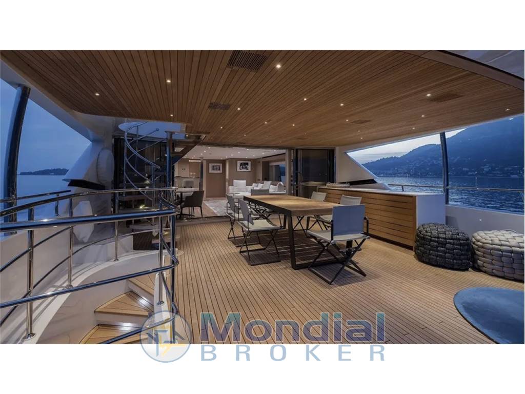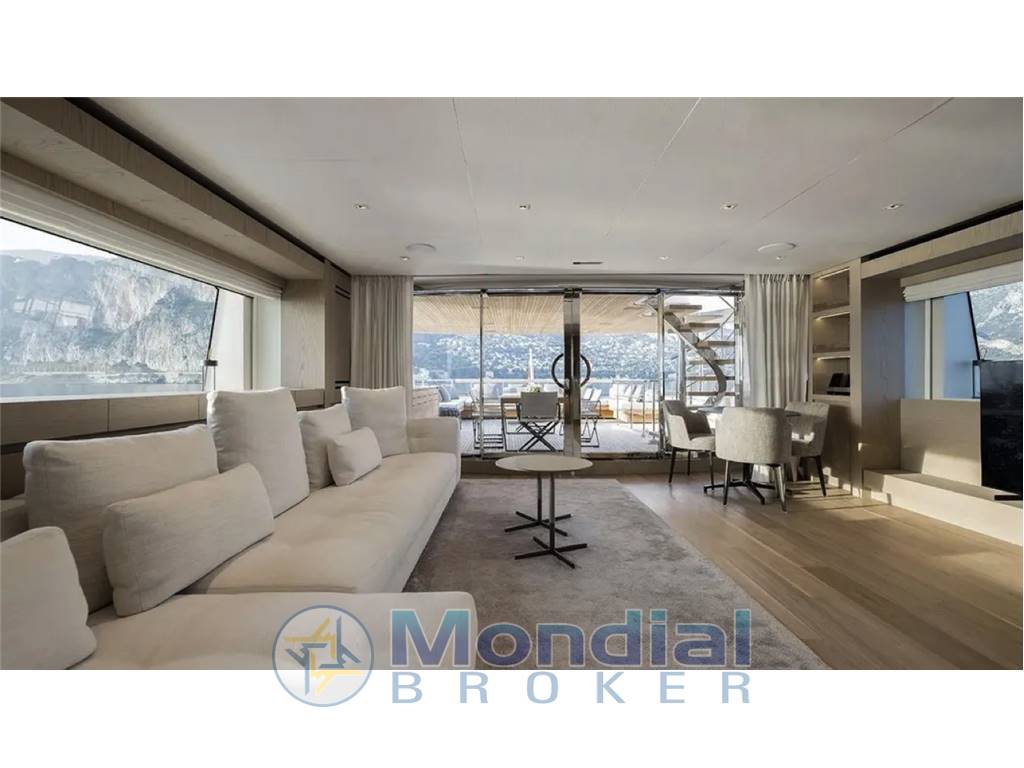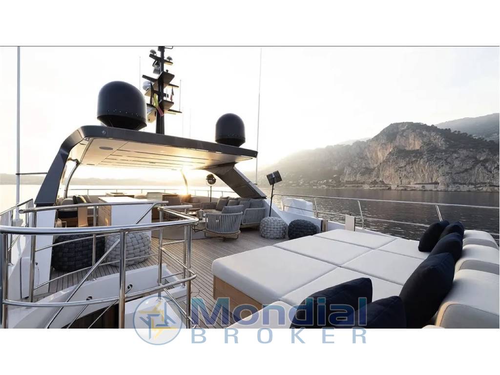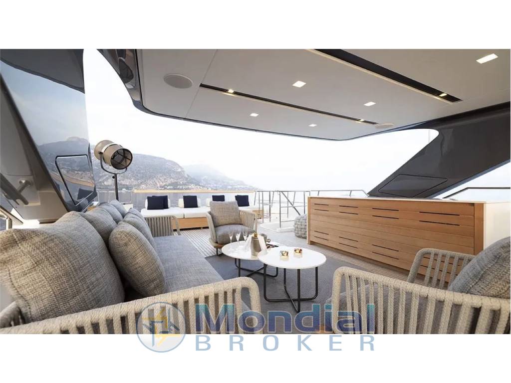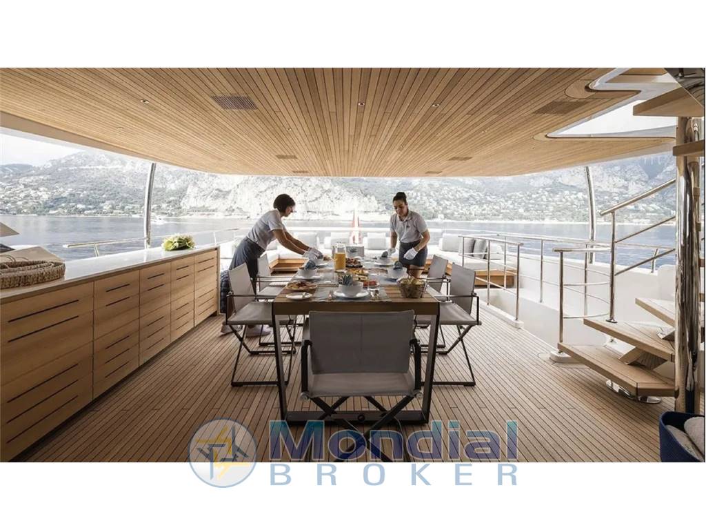 The Sanlorenzo SD126 was designed to optimize and maximize all spaces, while enriching the interior areas with natural light. The sheer line amid ship is cut to let the enlarged side windows catch as muchlight as possible, allowing guests enjoy the view even while sitting in the salon. The bow is a living space with sofas, sunbathing cushions. Up top, the flybridge is expanded into a generous sunbathing and entertaining area, to a tender garage at the transom and hydraulic lift swim platform.