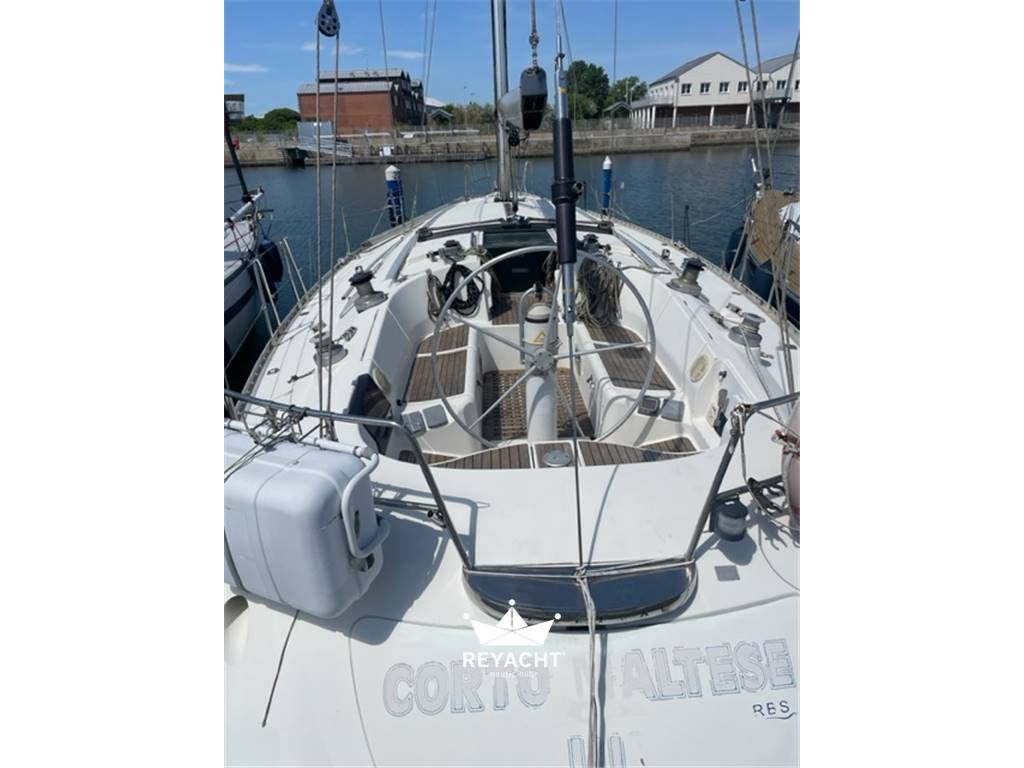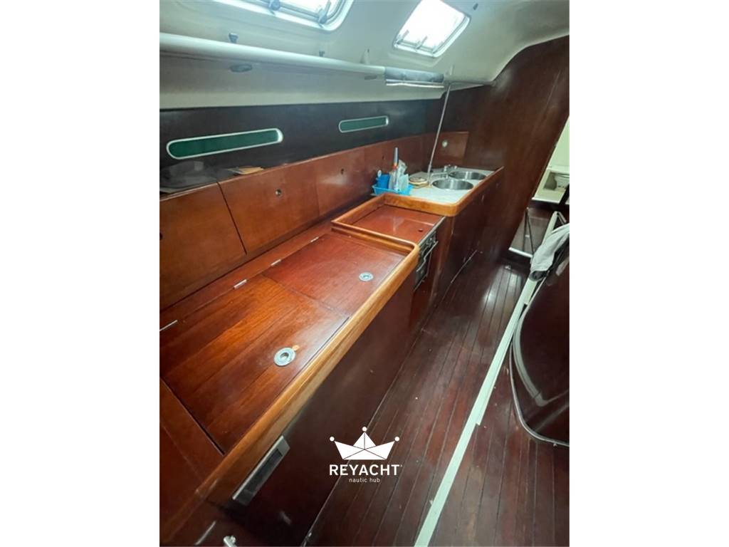 Splendido fast-cruiser Fist 45 F5 il cantiere Beneteau nel1990 affidò alla matita di Bruce Farr e allo studio Pininfarina per confermare per la linea dei First  velocità ed eleganza , adatto a regate, alle crociere anche  di lunga navigazione con interni di pregio armatoriali.
