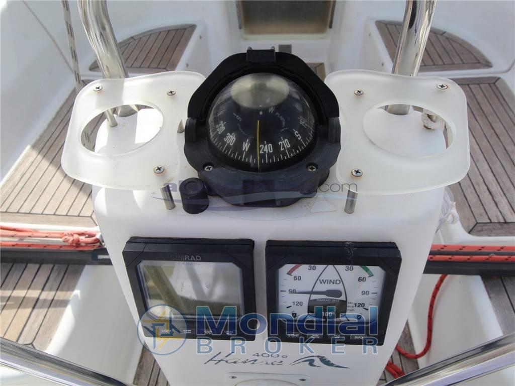 Hanse 400e in versione 3 cabine e 2 bagni; Panca del timoniere a poppa trasformabile in prendisole; Accessoriata con randa full-batten, fiocco autovirante, elica di prua, tavolo in pozzetto amovibile, elettronica Simrad completa di pilota automatico.