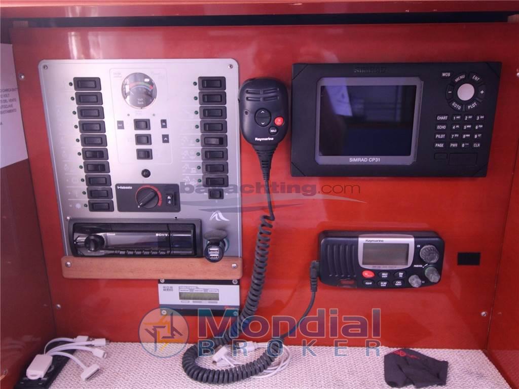 Bussola (PLASTIMO), Ecoscandaglio (SIMRAD IS12), Log (SIMRAD IS12), Pilota automatico (SIMRAD), Plotter con antenna GPS (SIMRAD CP31), Radio VHF (RAYMARINE RAY54E), Stazione vento (SIMRAD IS12).