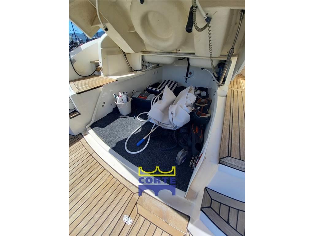 Allarme motore, Allarme sentina, Ancora, Autoclave, Batterie, Caricabatterie, Comando motori elettronico, Contametri catena, Contamiglia, Doccia esterna, Ecoscandaglio (Raymarine ST60+), Elica di prua - bow thruster, Faro orientabile, Flap idraulici, Garage per tender, GPS, Lavandino nel Pozzetto, Log, Passerella (elettroidraulica a scomparsa), Piattaforma (di poppa in teak), Pilota automatico (Raymarine), Plotter (Raymarine C80), Pompa di sentina automatica, Pompa di sentina elettrica, Porta ingresso, Pozzetto Teak, Presa 220V banchina, Radio VHF, Salpa Ancore Elettrico, Scaletta da bagno, Tavolo pozzetto, Tromba