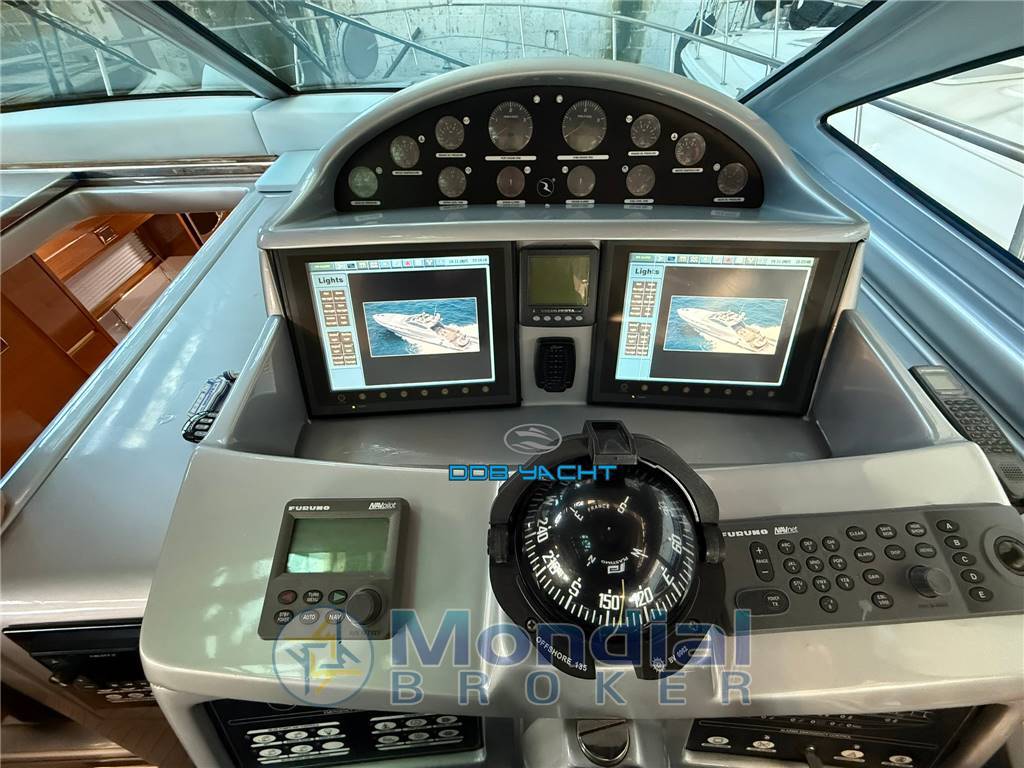strumenti motore VOLVO PENTA analogici e digitali, strumento multifunzione VOLVO PENTA, manette elettroniche, doppio schermo con comandi per la domotica di bordo ed interfaccia gps, VHF, flaps BENNETT con indicatori digitali, pilota automatico FURUNO, bussola PLASTIMO, luci via, tromba, stereo HERTZ HMR 20 con casse, aspiratori, elica di prua.