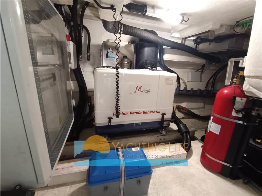 Allarme motore, Allarme sentina, Ancora, Angolo barra, Antenna radar, Autoclave, Autogonfiabile, Batterie, Bussola, Caricabatterie, Contamiglia, Doccia esterna, Ecoscandaglio, Elica di prua - bow thruster, Flap elettrici, Garage per tender, GPS, Hard top, Indicatori Flaps, Joystick, Luci di cortesia, Passerella (idraulica a scomparsa), Piattaforma (idraulica), Pilota automatico, Pompa di sentina automatica, Pompa di sentina elettrica, Porta ingresso, Pozzetto Teak, Presa 220V banchina, Radar, Radio VHF, Salpa Ancore Elettrico, Scaletta da bagno, Selle per Tender, Tavolo pozzetto, Tromba, Winch tonneggio di poppa