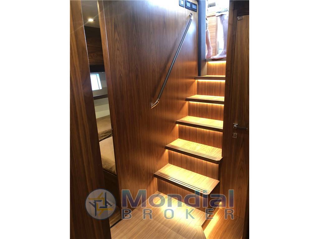 Plancetta di poppa ad immersione, passerella idraulica a scomparsa – Luci sommerse – Teak in pozzetto a camminamenti – verricelli di ormeggio – Doppio imbarca gasolio – Doppio cavo da banchina – Dissalatore (100Lt/h – Generatore KHOLER 16kW – Stabilizzatore giroscopico SEAKEEPER 6 USA – Inverter 5kW – Elica di prua – Elica di Poppa – Comandi leve elettroniche – Aria condizionate – WIFi router con antenna connessione 4G – Sistema Sat TV ( Raymarine)Area flybridge con cucina estiva, seconda stazione di governo, largo prendisole. Pannelli solari su parte anteriore Fly con inverter dedicato