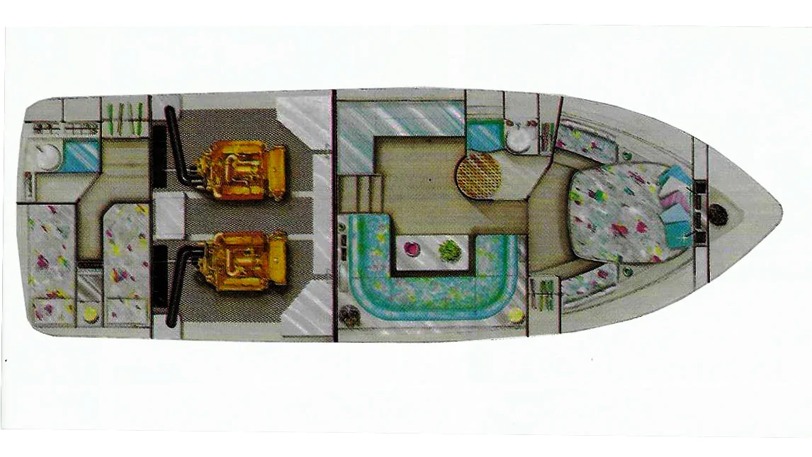 Interni in legno bianco, moquette nel salone e nelle cabine.