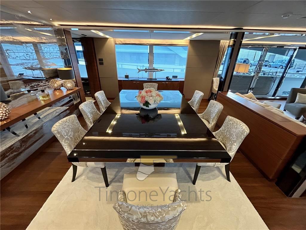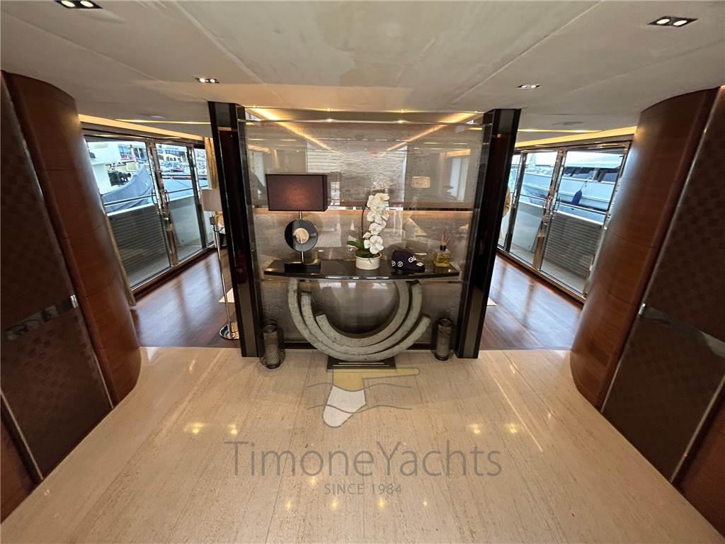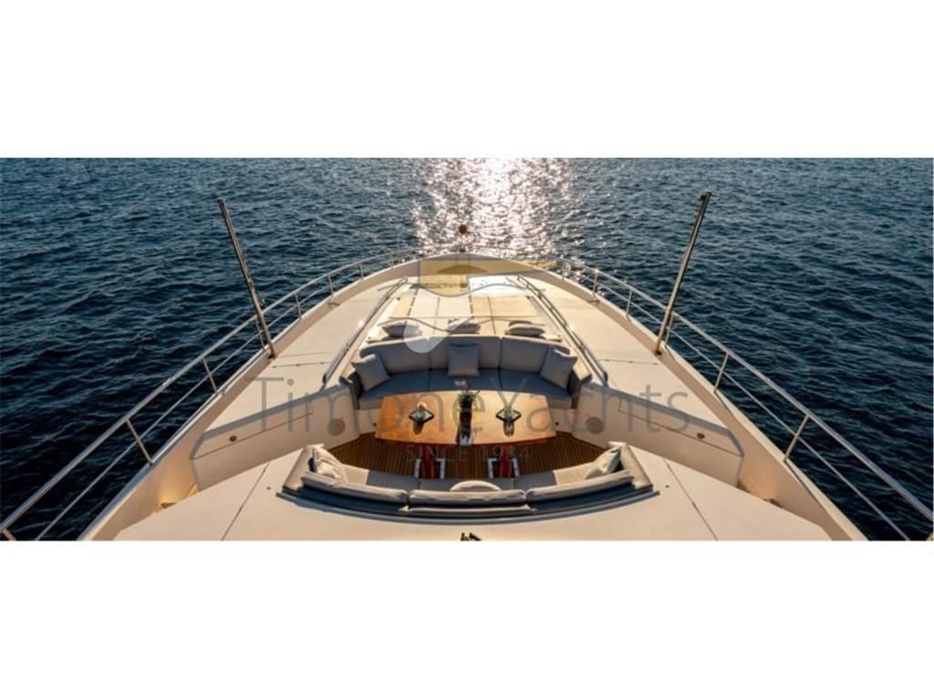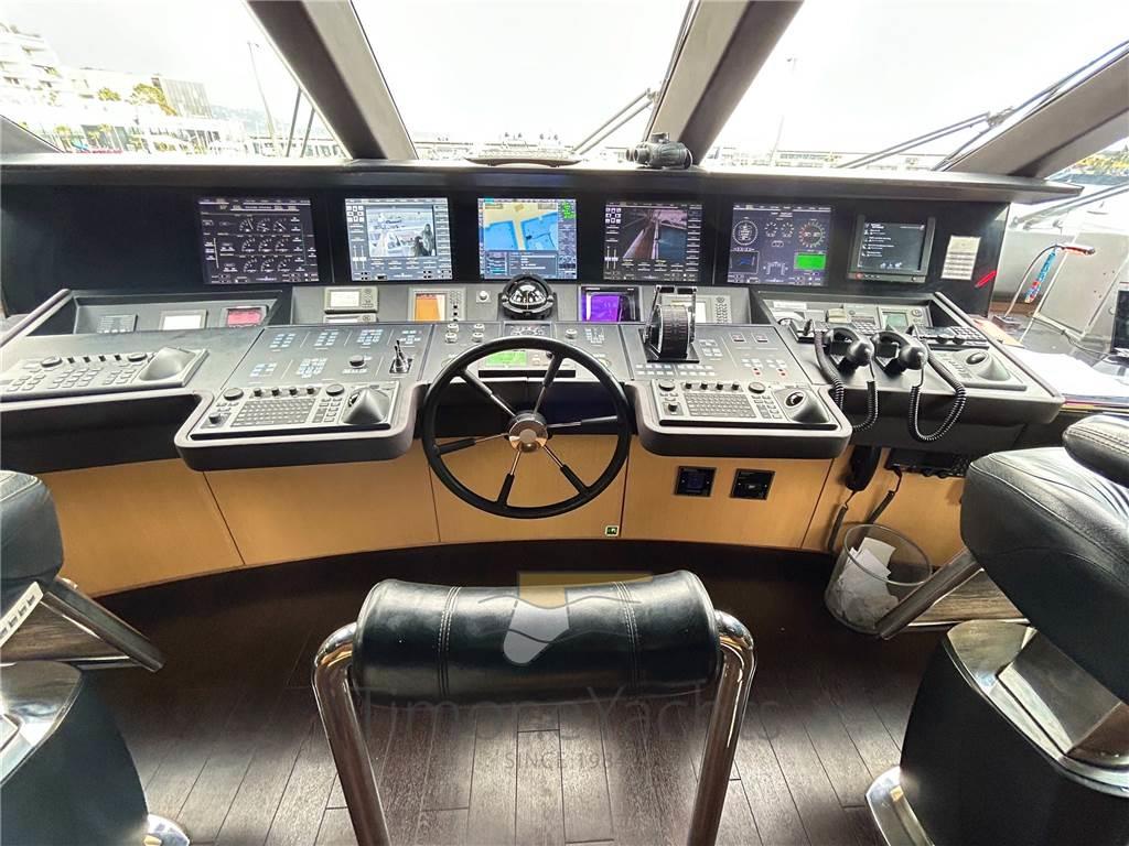 Allarme fumo/gas, 2 Allarme motore, Allarme sentina, Ancora, Bitte Abbattibili, Camminamenti laterali in teak, Doccia esterna, Doppia timoneria, Elica di poppa - stern thruster, Elica di prua - bow thruster, Fari fissi a poppa, Faro orientabile, Flap idraulici, Garage per tender, Hard top, Impianto antincendio, Indicatori Flaps, Lavaggio catena, Luci di cortesia, Luci subacquee, Passerella (elettroidraulica), Piattaforma, Porta ingresso, 2 Porta laterale, Pozzetto Teak, Presa 220V banchina, Presa acqua banchina, Raddrizzatore, 2 Salpa Ancore Idraulico, Scaletta da bagno, Selle per Tender, Stabilizzatori (ABI TRAC FINS), Tavolo pozzetto, Tender, Tromba, 2 Winch tonneggio di poppa, 2 Winch tonneggio di prua.