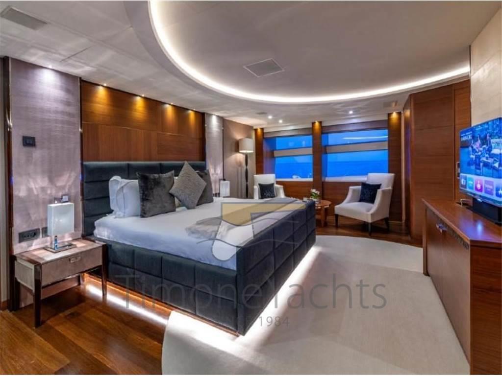 Questa nave da 395GT si distingue per un volume impressionante al suo interno: Può ospitare comodamente 12 ospiti in 5 cabine grande finitura, sino a 7 membri dell'equipaggio per il massimo servizio.