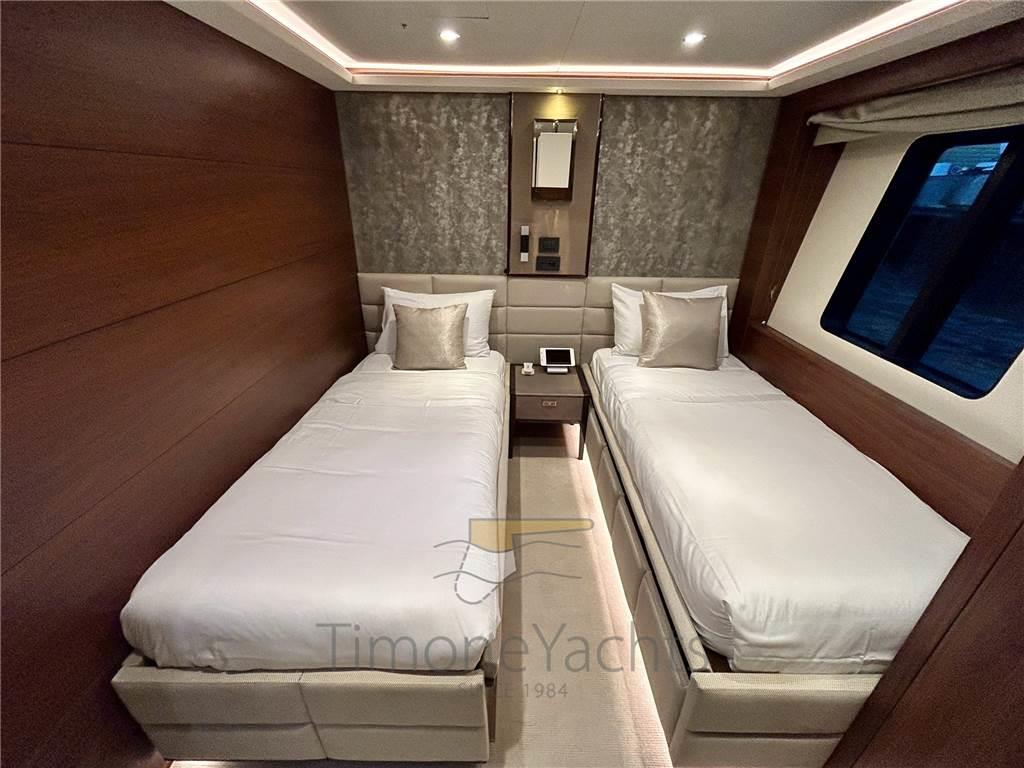 Può ospitare comodamente 12 ospiti in 5 cabine grande finitura, dove gli ospiti sono divisi in una superba cabina Master a prora del ponte principale con doppio bagno, 2 cabine VIP e 2 cabine doppie convertibili, ciascuna con letti Pullman pieghevoli aggiuntivi. Ogni cabina è elegantemente arredata e dotata di proprio bagno privato. Trasporta anche alloggi per 7 membri dell'equipaggio per il massimo servizio durante il charter.
