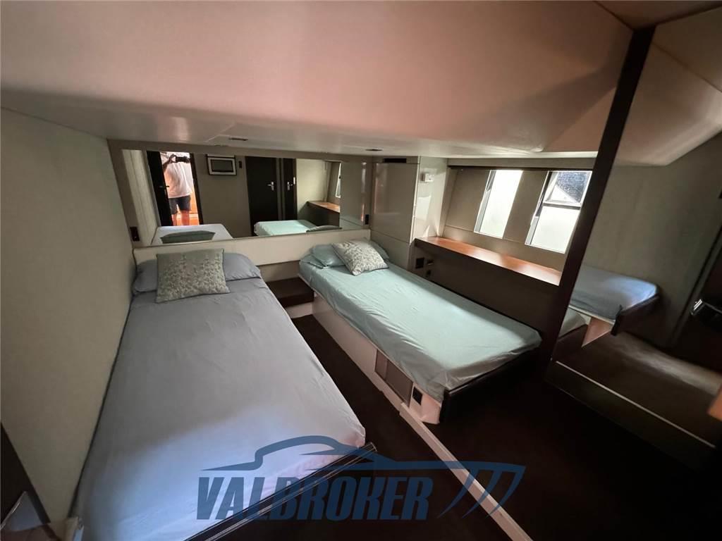 Sportcruiser elegante e contemporaneo. Cabina armatoriale a tutto baglio con bagno privato, due cabine ospiti con servizi e cabina marinaio. Motorizzata con 2x900HP Volvo Penta D13 in linea d'asse, solo 700 ore di moto.