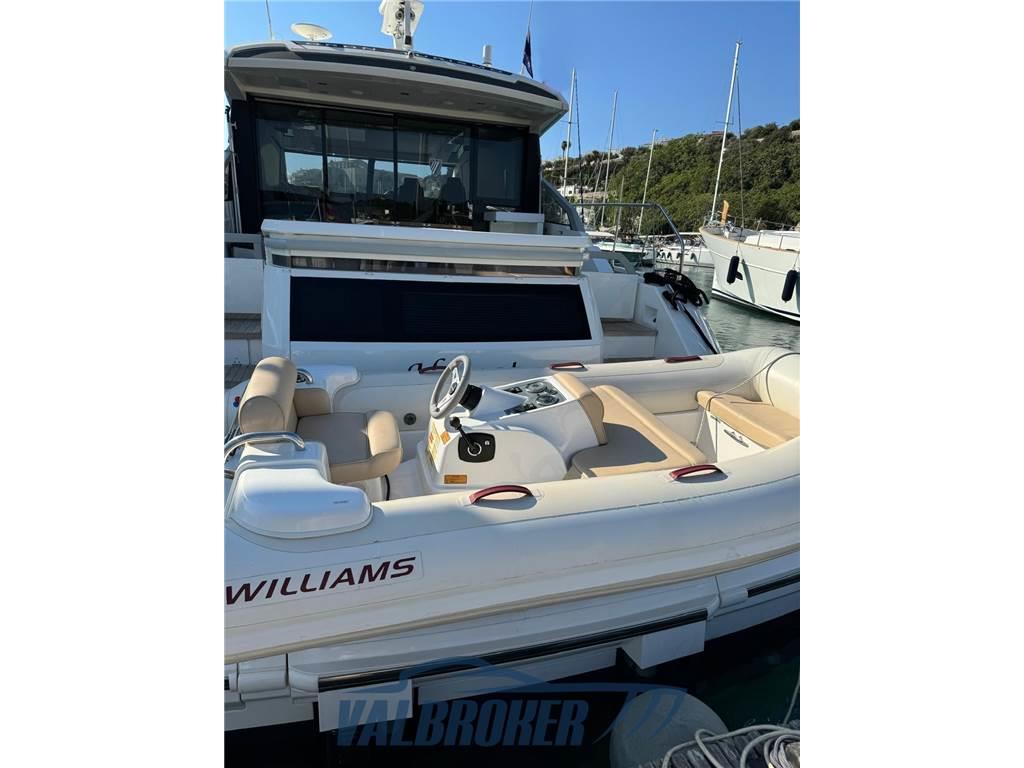 Autoclave, Batterie, Bussola, Caricabatterie, Doccia esterna, Elica di poppa - stern thruster, Elica di prua - bow thruster, GPS, Hard top (apribile), Passerella (idraulica), Piattaforma (teak, idraulica), Porta ingresso, Pozzetto Teak, Radar (Garmin), Radio VHF, Salpa Ancore Elettrico, Selle per Tender, Tavolo pozzetto (teak), Tender (Williams 80 kw)
