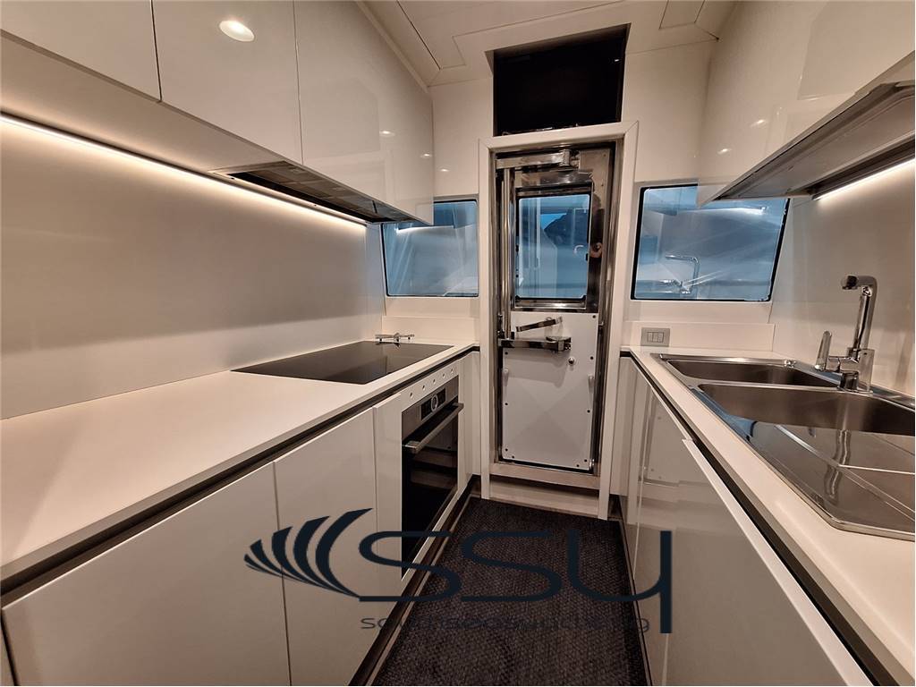 - Cucina separata con doppio accesso (int/est), frigo & freezer a colonna Bosch, piano cottura ad induzione Neff, forno elettrico Bosch, lavastoviglie Miele, fabbricatore di ghiaccio Isotherm, monitor lcd con telecamere sorveglianza e porta di servizio laterale;