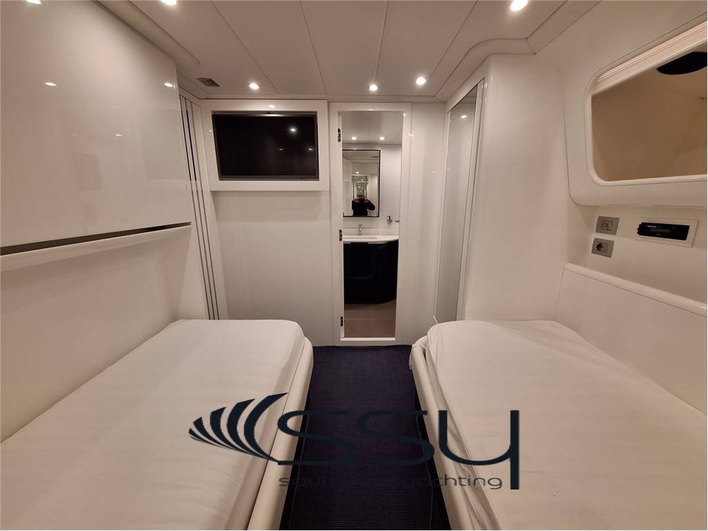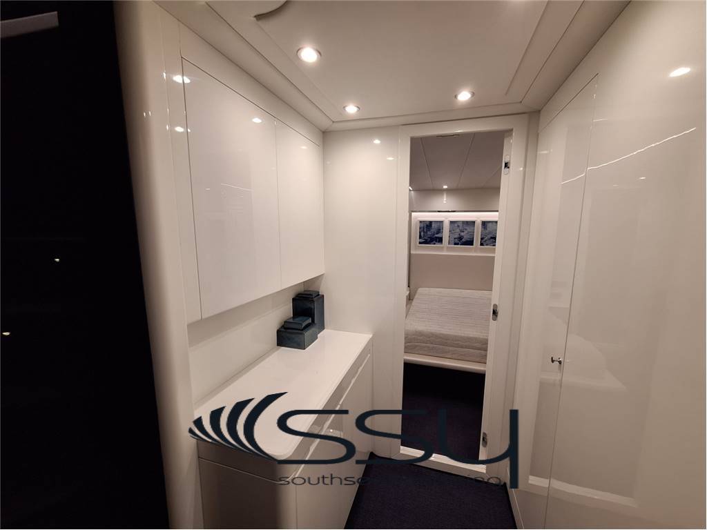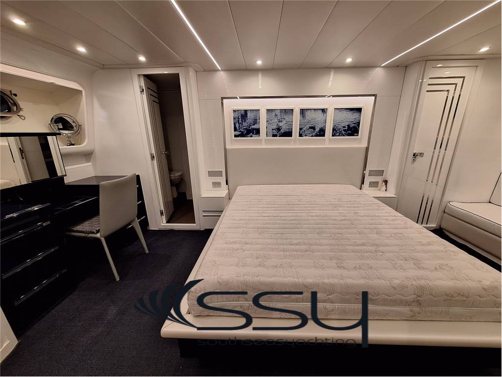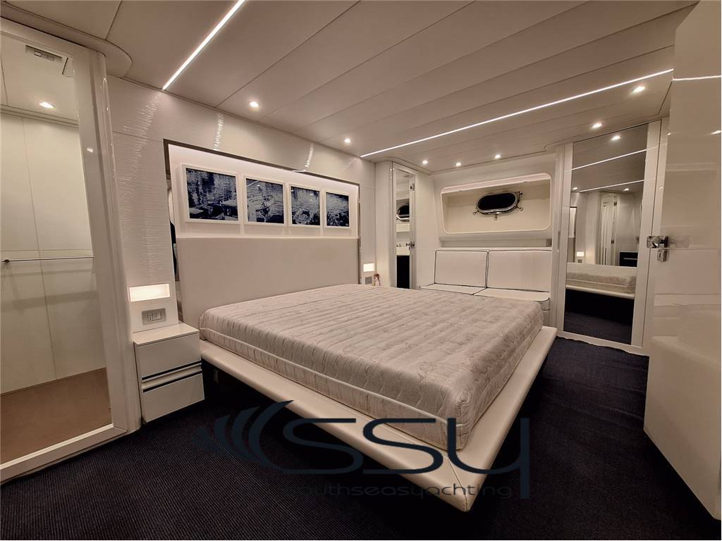 - ampia cabina armatoriale matrimoniale a centro barca a tutto baglio, completa di 2 bagni ensuite con box doccia, cabina armadio, angolo vanity, divanetto, smart tv Samsung, sat decoder, cd/dvd/mp3 player;