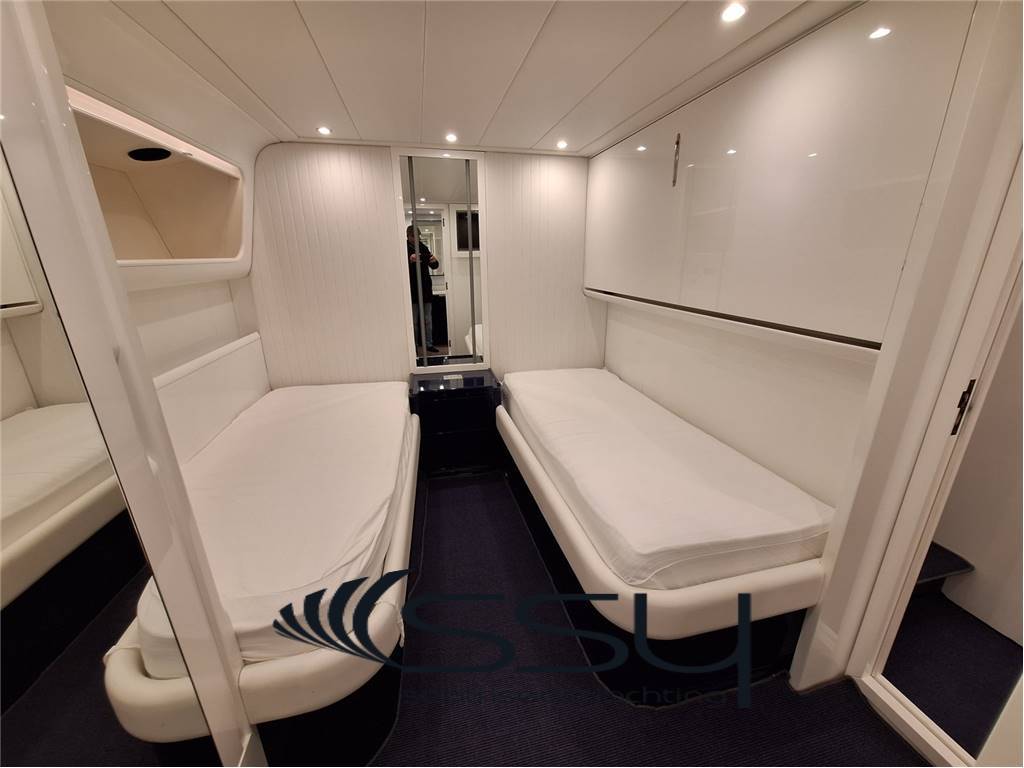 - locale equipaggio separato a poppa composto da cabina capitano + cabina doppia con bagno in comune ed accesso diretto alla sala macchine, frigorifero e congelatore Bosch, lavasciuga Whirpool 9kg.