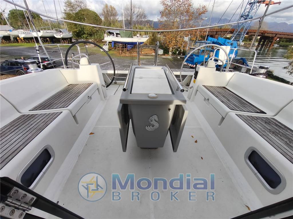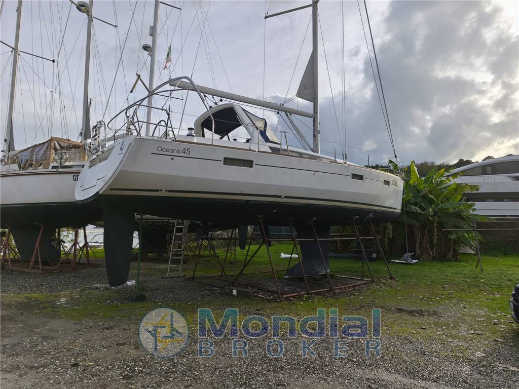 Piattaforma da bagno abbattibile elettrica elemento distintivo dell'Oceanis 45). Prua dritta con delfiniera integrata, Elica di Prua