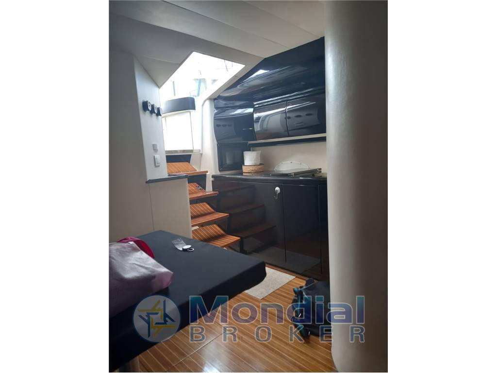 generatore,aria condizionata,passerella idraulica,frigo,freezer,forno,stereo,imp.TV,pedana di poppa lunga in VTR, tendalini,cuscinerie rifatte nuove,pozzetto in teak, pavimento interno in legno,tavolo pozzetto,telecamere sala motori.
