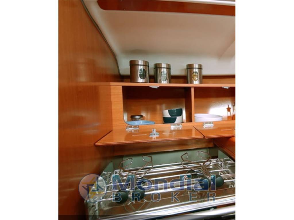 Passerella pieghevole, Bimini con prolunga per timoniere, Cappottina paraspruzzi,cuscineria pozzetto completa,cime d ormeggio e parabordi,dotazioni di sicurezza in corso di validità, zattera con revisione aggiornata, lazy bag, carrelli genoa parancati, due barber houler,sei winch harken in pozzetto, rullafiocco filo ponte,salpancora con comando dal pozzetto con cinquanta metri di catena da dieci e ancora delta da venticinque kg, attrezzatura spi completa di tangone in carbonio e attrezzatura gennaker con mura su musone, dotazione vele con due rande, du genoa, un fiocco, una randa di cappa e una tormentina, tre spinnaker e un gennaker.