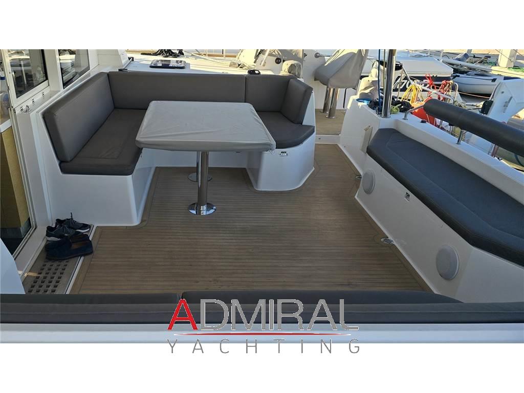 Ancora (FALCON maggiorata con 100 mt. di catena + 60mt. di cima), Altoparlanti (interni/esterni), Aria condizionata (caldo/freddo), Autoclave (2), Batterie servizi VICTRON AGM 6x165ah, Batterie motori NAUTICA IB AGM 2x120ah (2025) - Batteria generatore 100ah, Boiler, Bompresso, Caricabatterie (MASTERVOLT 100A), Clima reversibile, Contametri catena (QUICK sulla timoneria sx), Copripozzetto (invernale/estivo), Cuscineria completa, Dissalatore (DESSALATOR 260 L/h - 220V), Elica di prua - Bow Thruster (MAX POWER 15kW), Fiocco steccato autovirante (2024), Generatore (ONAN 9.5 kW), Gruette per tender, Impianto acque nere, Impianto stereo (FUSION), Impianto TV, Inverter (VICTRON 3KW), Jennaker con frullo, Lazy bag, Lazy jack, Luci sottoscafo, Oscuranti, Pannelli solari, Passerella (2024), Pompe di sentina automatiche, Pozzetto in Teak (sintetico) Prese interne 12v, Prese interne 220v, Sartiame spiroidale, Salpa ancore elettrico (QUICK), Serbatoio Acque Nere, Tavolo dinette abbattibile, Tavolo pozzetto, Telecamere (4), Teli copriconsolle, Teli copri finestre, Teli coprisedute, Tender SUR MARINE 3,70m - Motore SUZUKI 30HP (con copertura tubolari e copertura totale 2024 / Batteria 2024 / Impianto elettrico 2025), Tetto elettrico, TV a scomparsa, WC marini elettrici (4), WC marino manuale (1), Winch (2) LEWMAR, Winch elettrici (2) LEWMAR, Winch tonneggio di prua, Zanzariere, Zattere (ARIMAR 2 x 8p)