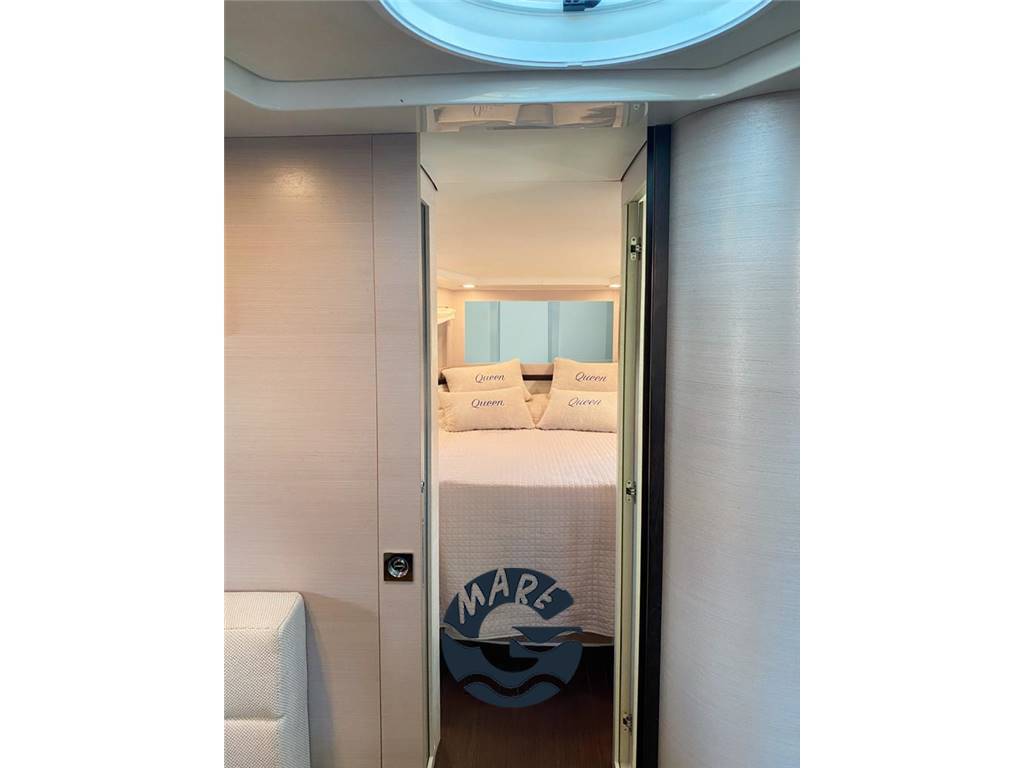 Per quanto riguarda gli interni, il Flash 48 non lesina sorprese, dall’ampio salone situato al centro della barca, alla cucina dotata di frigorifero a tutta altezza. La suite armatoriale, ubicata a prua, possiede un bagno indipendente con cabina doccia separata. A poppa troviamo invece la cabina per gli ospiti, anch’essa dotata di bagno privato. Presente anche una cabina marinaio con bagno.