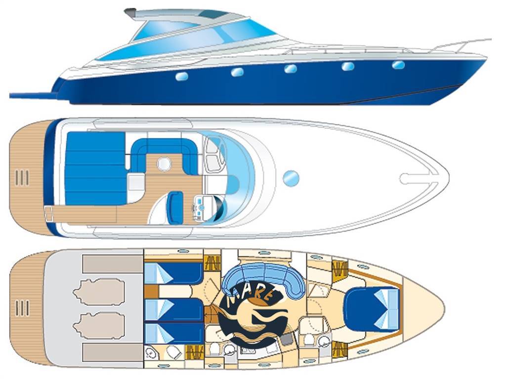 Barca in ottime condizioni che ha ricevuto un profondo rinnovamento sia negli esterni che sotto l'aspetto meccanico. Motori sbarcati a Giugno 2022 con sostituzione di 3 iniettori e revisione degli altri 9, sostituzione 2 turbine, pulizia scambiatori di calore con scomposizione e cambio guarnizioni, riser nuovi, scarichi nuovi su misura con verniciatura a polvere.