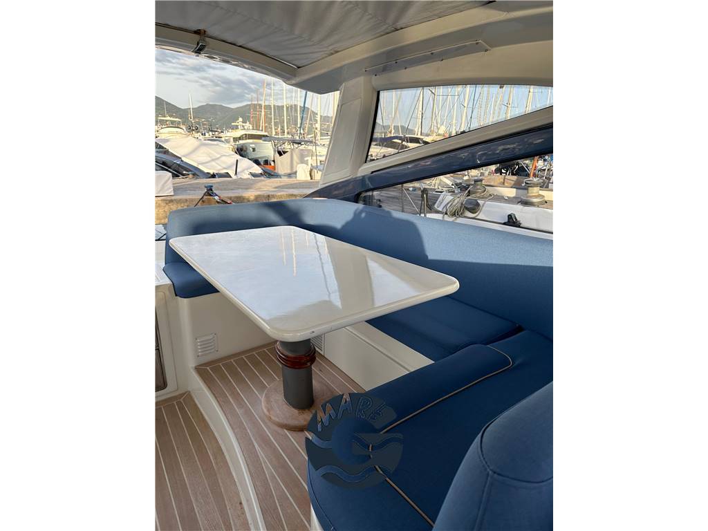 L’elemento caratterizzante del Flash 48 è l’hard top in vetroresina. Un alleato prezioso per poter vivere il mare in qualsiasi condizione meteorologica. Questo hard top ha infatti la peculiarità di essere totalmente apribile tramite comando elettronico. Si può così passare in tutta facilità da un living chiuso ad un confortevole ambiente a cielo aperto, in cui trovano spazio un ampio prendisole, uno spazioso divano e un tavolo di generose dimensioni.
