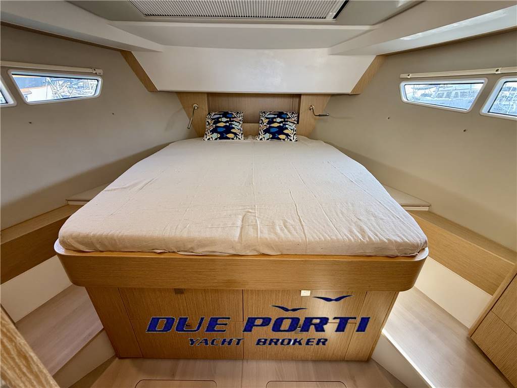 Cabina ospiti a centro barca con letto matrimoniale alla francese ed armadio.