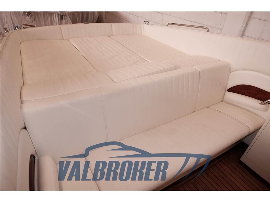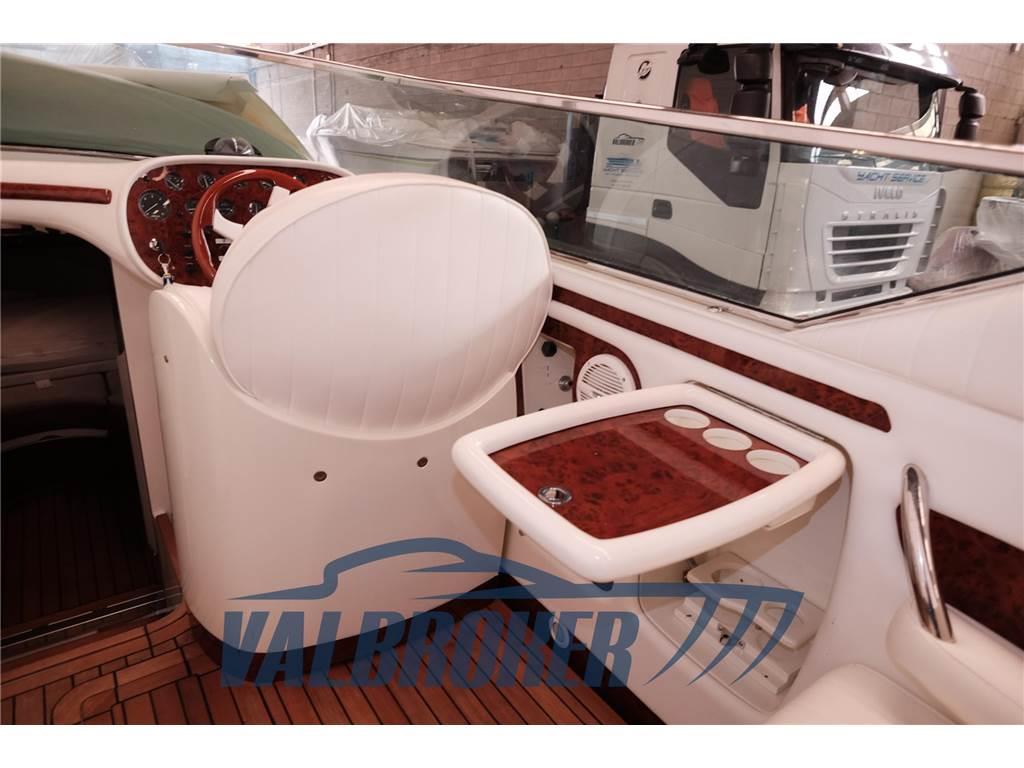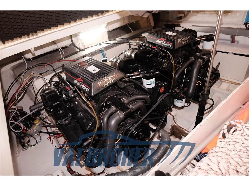 Motori 2x Mercury 350 MAGNUM. V8 benzina. Nel 2021 i motori e le trasmissioni sono stati portati a zero ore da ufficiale Mercury Como. Lavori eseguiti 2021: verniciatura murate nobilitate con linee blu, tappezzeria interna in Alcantara color panna, cielini, tappezzeria esterna originale Colombo, revisione impianto elettrico, sostituzione di tutti i bottazzi da artigiano specializzato, installazione verricello Lewmar, fono assorbente vano motori, verniciatura sentina sala motori, asportazione vecchi strati anti vegetativa, pulizia serbatoi carburante. - 2022: stampo vetroresina con piattaforma estesa in teak massello. 2024: relais motore destro, solenoid e harness assembly, radio, luce di via di poppa, antivegetativa, lucidatura, trattameno teak su pozzetto e plancetta con olio, tagliando motori e trasmissioni.