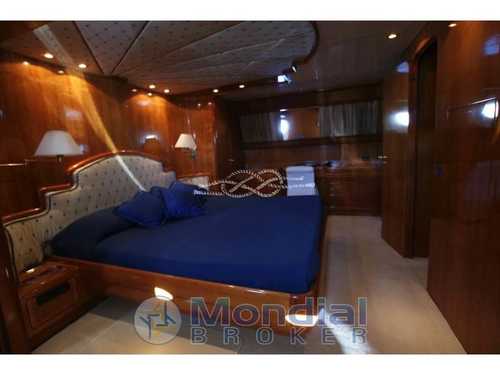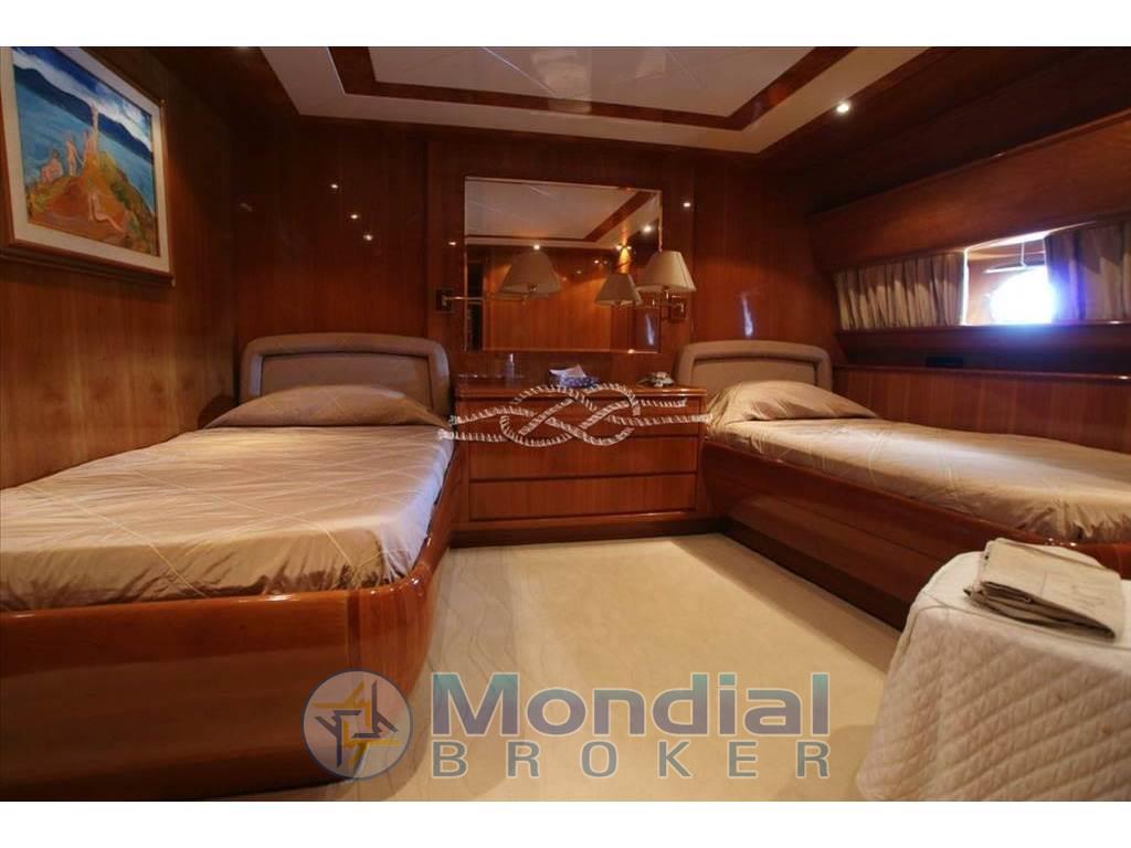 Cabina armatoriale con letto matrimoniale, cabina armadio e bagno - cabina Vip con due letti e bagno - cabina ospiti con due letti e bagno - cabina ospiti con due letti e bagno - equipaggio: cabina doppia con bagno a prua, cabina singola con bagno a poppa. Tutti i bagni hanno docce separate.