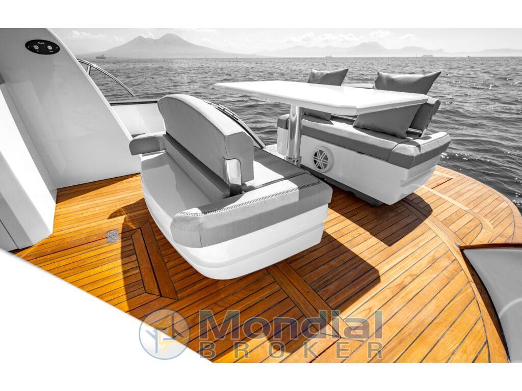 la coperta è in pregiato teak massello stagionato e lo scafo in vetroresina è ottenuto con metodo ad infusione che ne riduce il peso a vantaggio della solidità è dell’ambiente consentendo l’utilizzo di un motore meno potente.