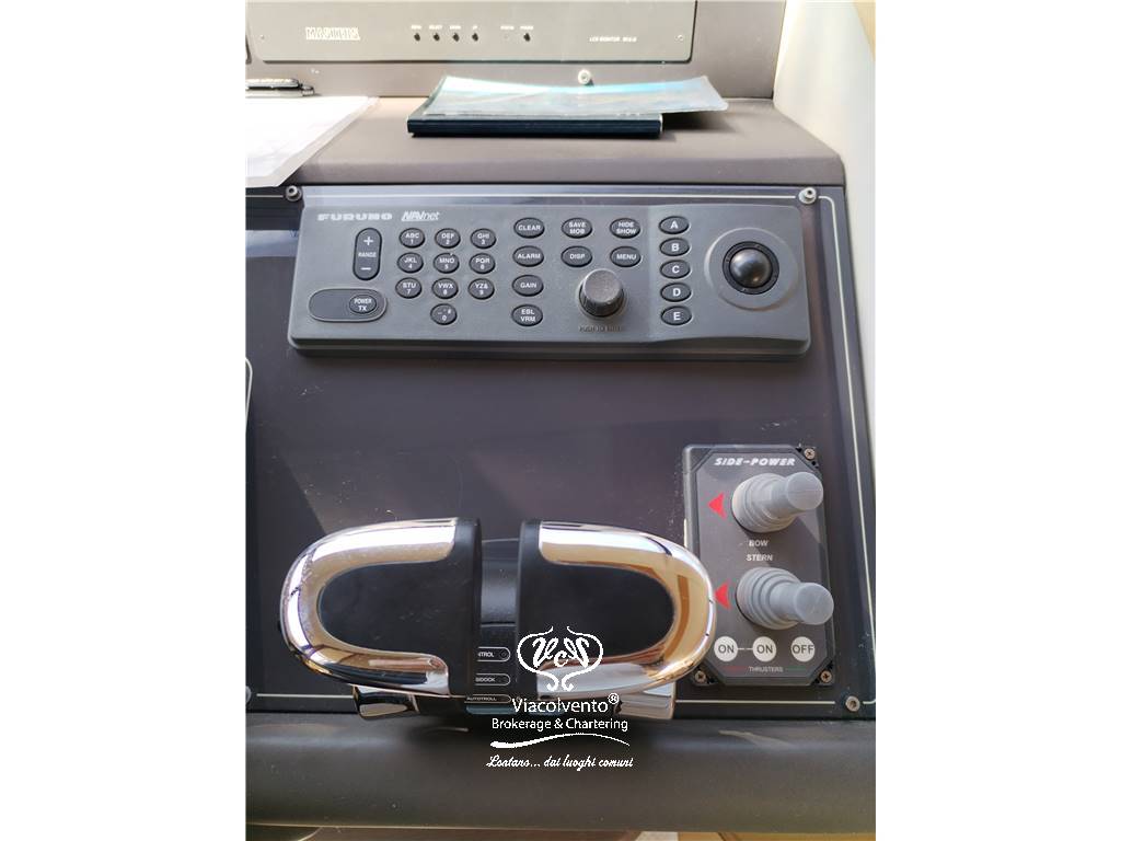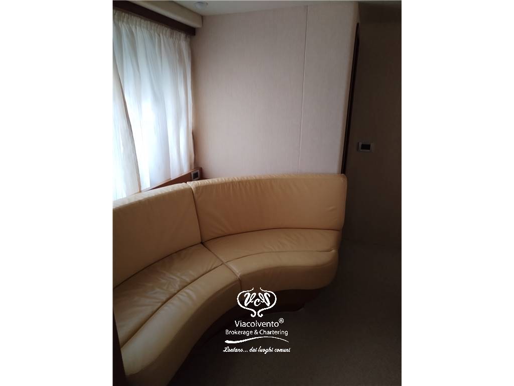 INTERNI CON LEGNI E TESSUTI IMPECCABILI, DISPONE DI CABINA ARMATORIALE LETTO MATRIMODIALE AD ISOLA E DIVANETTO, AMPIO BAGNO PRIVATO CON DOCCCIA, CABINA VIP LETTO MATRIMONIALE E BAGNO PRIVATO, CABINA OSPITI DOPPIA LETTI IN PIANO E UNA DOPPIA LETTI INCROCIATI, BAGNO DEDICATO CON DOCCIA, LA ZONA EQUIPAGGIO SEPARATA CON 3 POSTI LETTO E BAGNO. CLIMATIZZATA, TV SAT, STEREO, WC ELETTRICI, CUCINA FULL PIANO COTTURA VETROCERAMICA, FORNO GRILL, FRIGO, IMPIANTO TV E STEREO, DISSALATORE, ICEMAKER, ZONA PRANZO CON TAVOLO RETTANGOLARE, ZONA DINETTE A POPPA CON TV E ANGOLO BAR, LAVANDERIA.