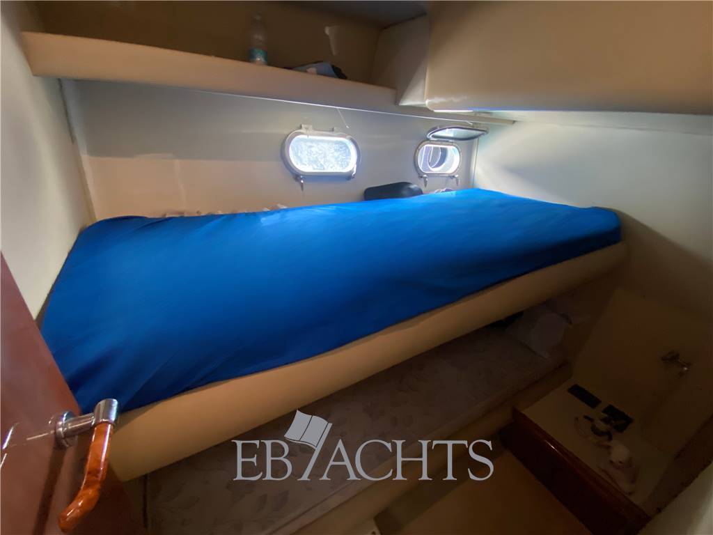 Flybridge vivibile e motori Caterpillar 2×420 HP, velocità di crociera 24–26 nodi.