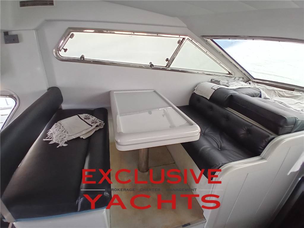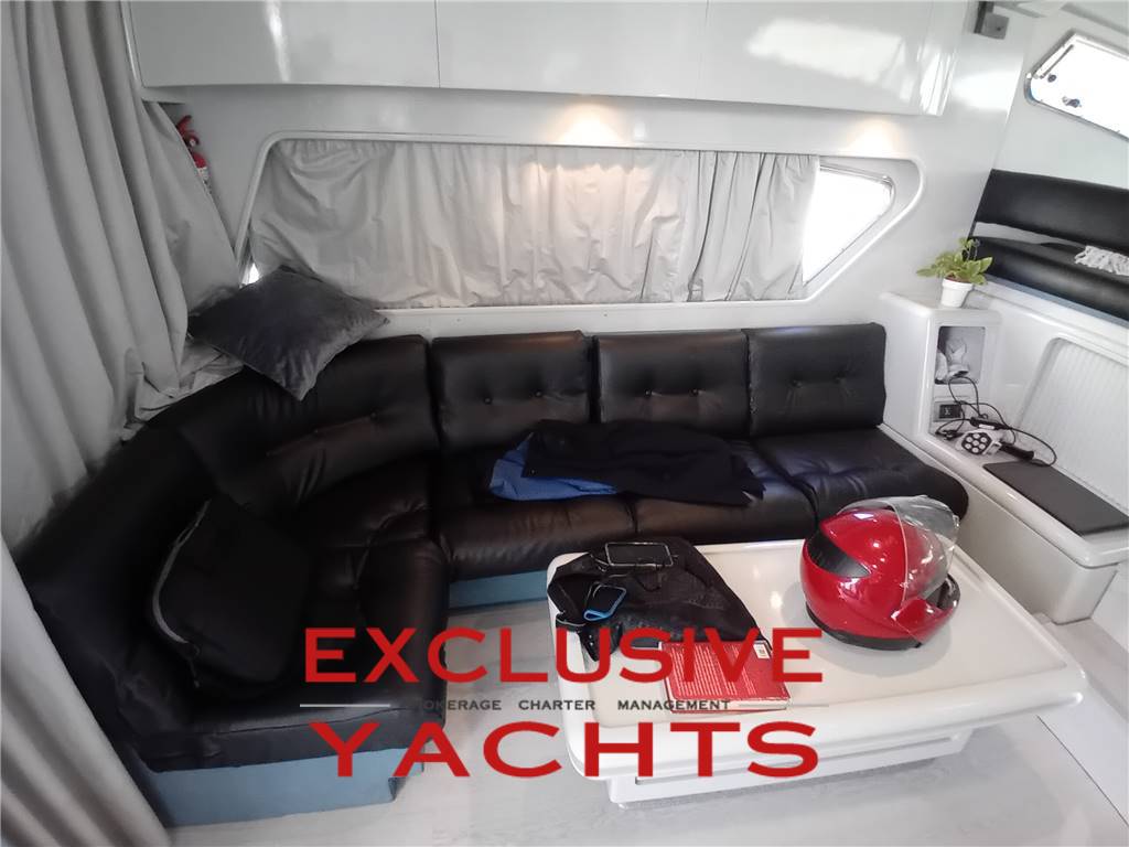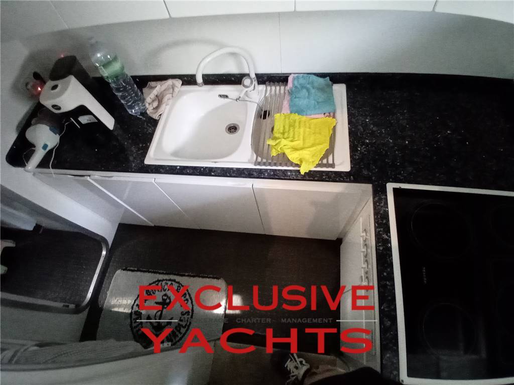 AMPIO SALONE CON DIVANO A L E TAVOLO, TAVOLO DA PRANZO, CUCINA CON PIASTRA INDUZIONE, FRIGORIFERO, LAVASTOVIGLIE, 3 CABINE DI CUI UNA ARMATORIALE A PRUA CON BAGNO, 1 CABINA OSPITI CON LETTO MATRIMONIALE, 1 CABINA OSPITI CON 2 LETTI SINGOLI. BAGNO OSPITI COMPLETO DI DOCCIA.