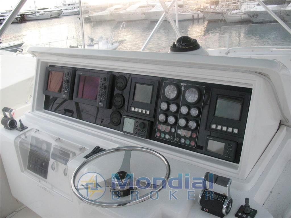 Altoparlanti, Antenna Satellitare TV, Aria condizionata (con termostato in ogni ambiente e nel fly), Boiler (bivalente), Cassaforte, Clima reversibile, Congelatore, Cucina, Cuscineria di prua, Cuscineria fly, Decoder satellite, Digitale Terrestre, Forno (a microonde), Frigorifero esterno, Frigorifero interno, Ghiacciaia, Home Theater (Bose), ICE Maker, Impianto acque nere, Impianto TV, Inverter, Microonde (combi), Pavimento interno in legno (Amtico), Piastra in vetroceramica, Portacanne, Prese interne 12v, Prese interne 220v, Radio AM/FM, Serbatoio Acque Nere, Stereo, Telecamera (in sala macchine), Teli chiusura T-Top (Nuovo 2025), Telo copriconsolle, Telo coprisedile, Tendalino (parasole pozzetto), 3 TV (Lcd), Vasca pescato, 3 WC marino elettrico, tientibene soffitto - Finestre scorrevoli al lati del salone - Finestra apribile elettricamente nel salone a poppa - Passi uomo coperta maggiorati - Tetto apribile Hard Top - Murate e soffitto hard top azzurro chiaro - bitte supplementari sul trincarino (n° 2) - Scarichi sommersi - Upgrade sedie fly - Cuscini prendisole di prua - Pavimento in Teak Amtico - Fly con divano e tavolo trasformabile in prendisole - 220-24-12V - Avvolgimento cavo banchina automatico - Elica di prua - Pompa lavaggio catena - Sollevamento idraulico del tavolo Fly - Frigoriferi - Freezer - Piastra elettrica in vetroceramica - Trolling Valve - Sistema di raffreddamento con acqua nebulizzata nel pozzetto - Sistema completo Furuno doppio display con funzioni da: GPS - VHF - Tridata - Fari sommersi - Doppi comandi elettronici - Impianto HiFi Bose - Antenna Satellitare - Lettori DVD