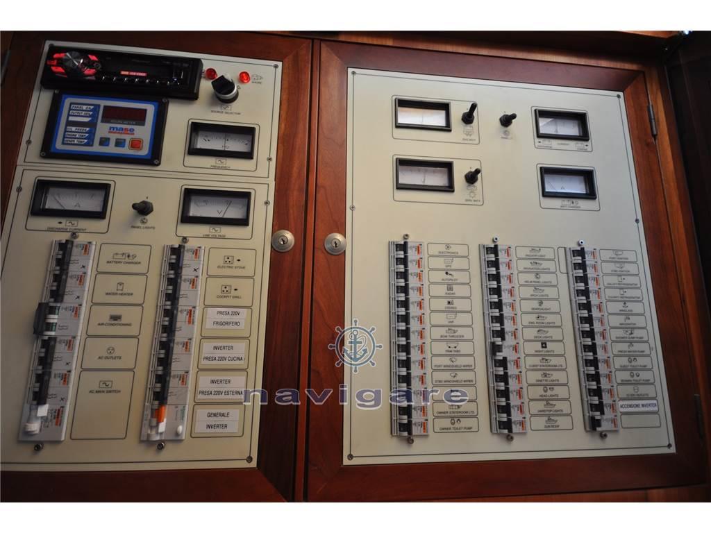, Flaps, Autoclave, Boiler, Serbatoi acque grigie e acque nere, Aria condizionata con pompa di calore, Frigobar, Cassaforte, Tv, Imp.stereo int/est, Imp.antincendio(2015), Tettuccio apribile in dinette, Doccia est., Passerella idraulica, 2xwinches tonneggio a poppa, Salpancora elettr., Plancia di poppa con selle porta tender e scaletta bagno, Mobili pozzetto in teak, Prendisole a prua, Cuscineria esterna, 2016 TENDALINO DI POPPA 2016 , Bussola, Allarmi,