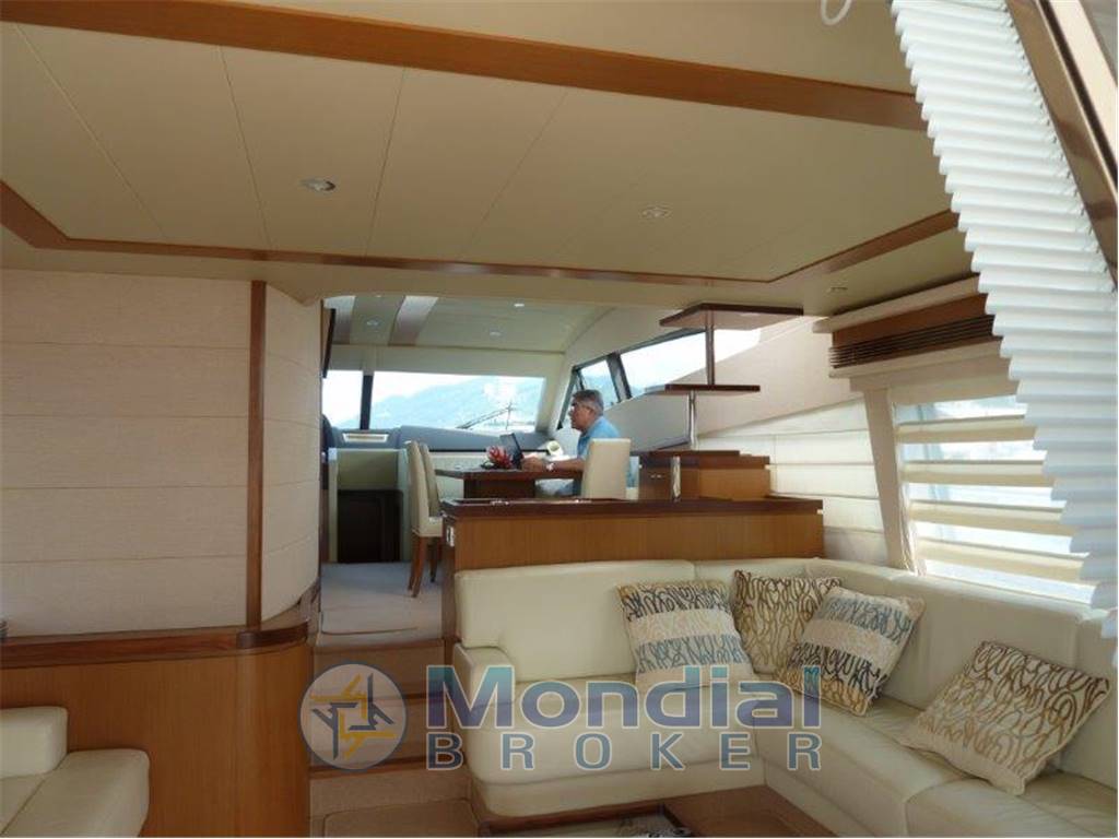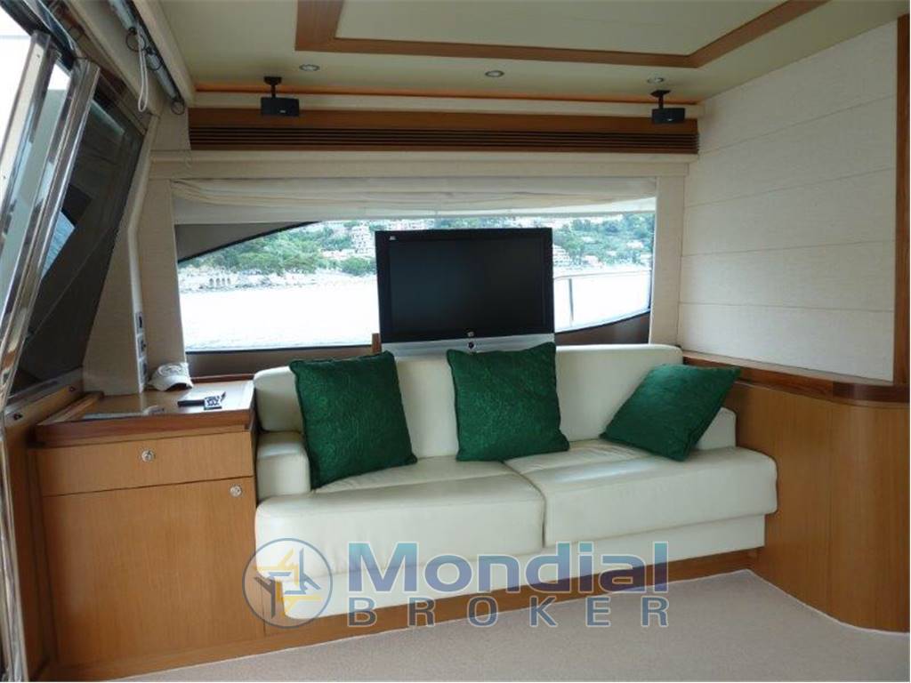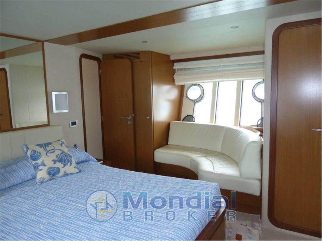 Ampio salone con divano a "L", divano 2 posti, tavolino da fumo mobile, scala accesso al fly, zona pranzo con tavolo e sedie, frigo inox;Cucina attrezzata con forno elettrico e microonde combinato, piano cottura in vetroceramica e cappa aspirante, frigorifero e surgelatore 74 lt. 230V, piano lavoro con 2 lavello, lavastoviglie, porta uscita laterale a movimentazione elettrica;Cabina armatore matrimoniale a centro barca con divano ad angolo, mobile basso vanity; Bagno armatoriale con doccia con vano separato, piano lavandino in marmo;Cabina VIP matrimoniale a prua con bagno;Cabina ospiti sx con letti in piano;Cabina ospiti dx con letti a castello ad "L";Bagno ospiti con doccia;Zona equipaggio composta da due cabine ed un bagno (3 posti letto)Interni in teak, Pavimento moquette.
