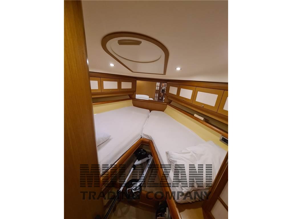 1 Matrimoniale italiana, 1 Cabina equipaggio, 1 Cucina, 1 Salone, 1 Toilette Equipaggio, 1 Doppia letti a V, 2 Toilette doccia no bidet